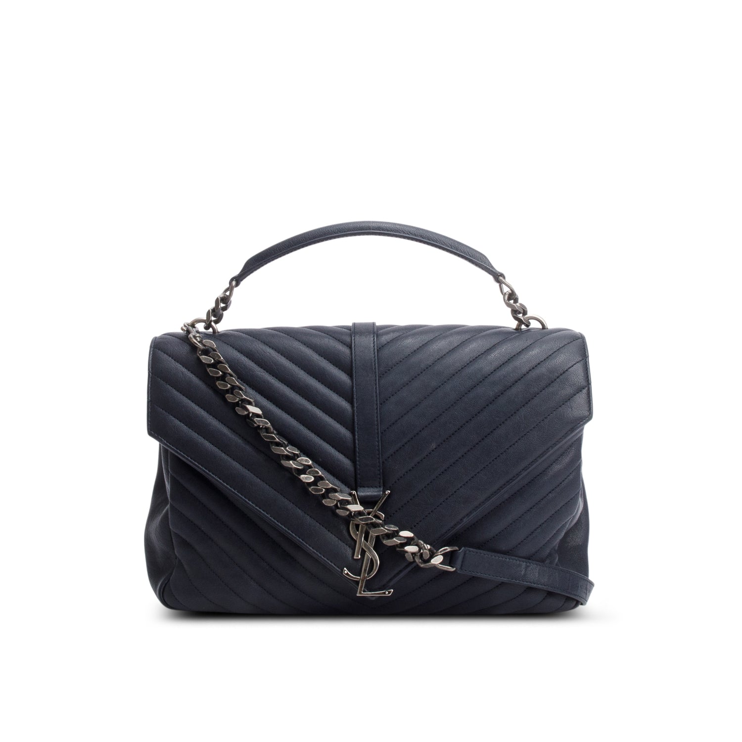 Navy Leather Large Chevron College Bag
