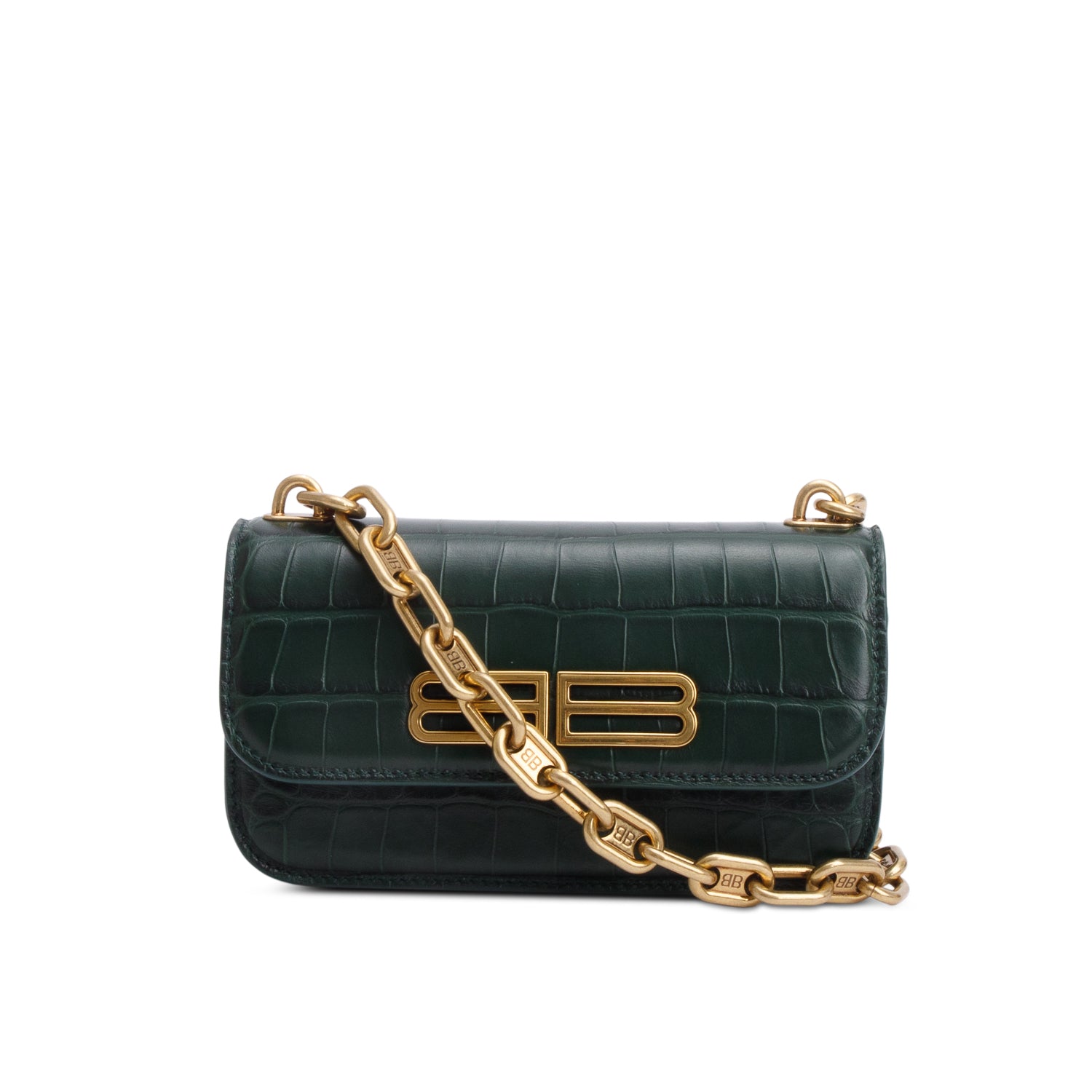 Green Croc-Embossed Leather XS Gossip Flap Bag