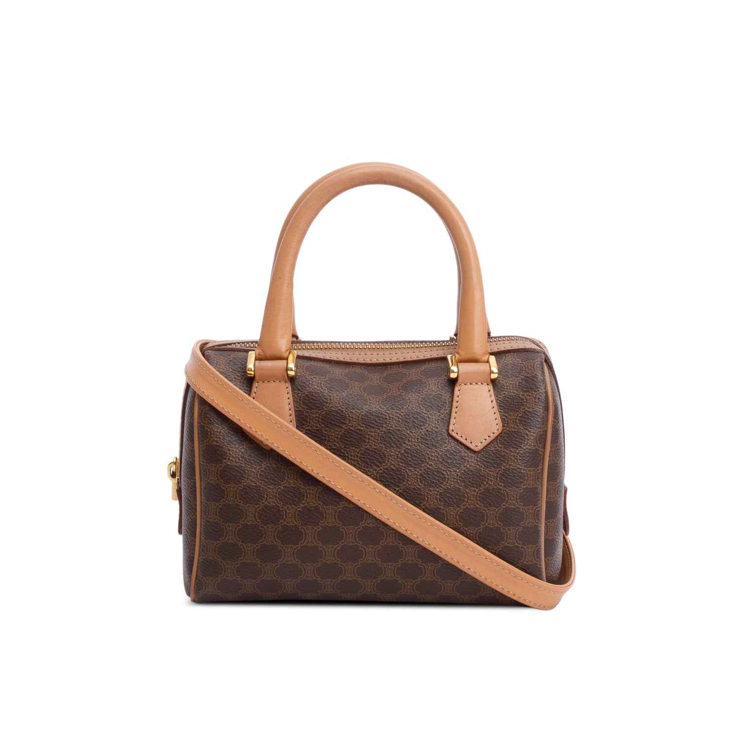Brown Triomphe Canvas Small Boston Bag w/ Strap