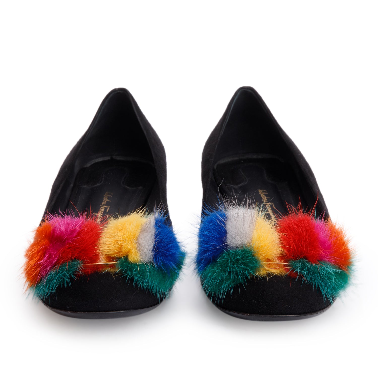 Black Quilted Satin Silver Leather Cap Toe Mary Jane Pumps, Size 37 w/ Box