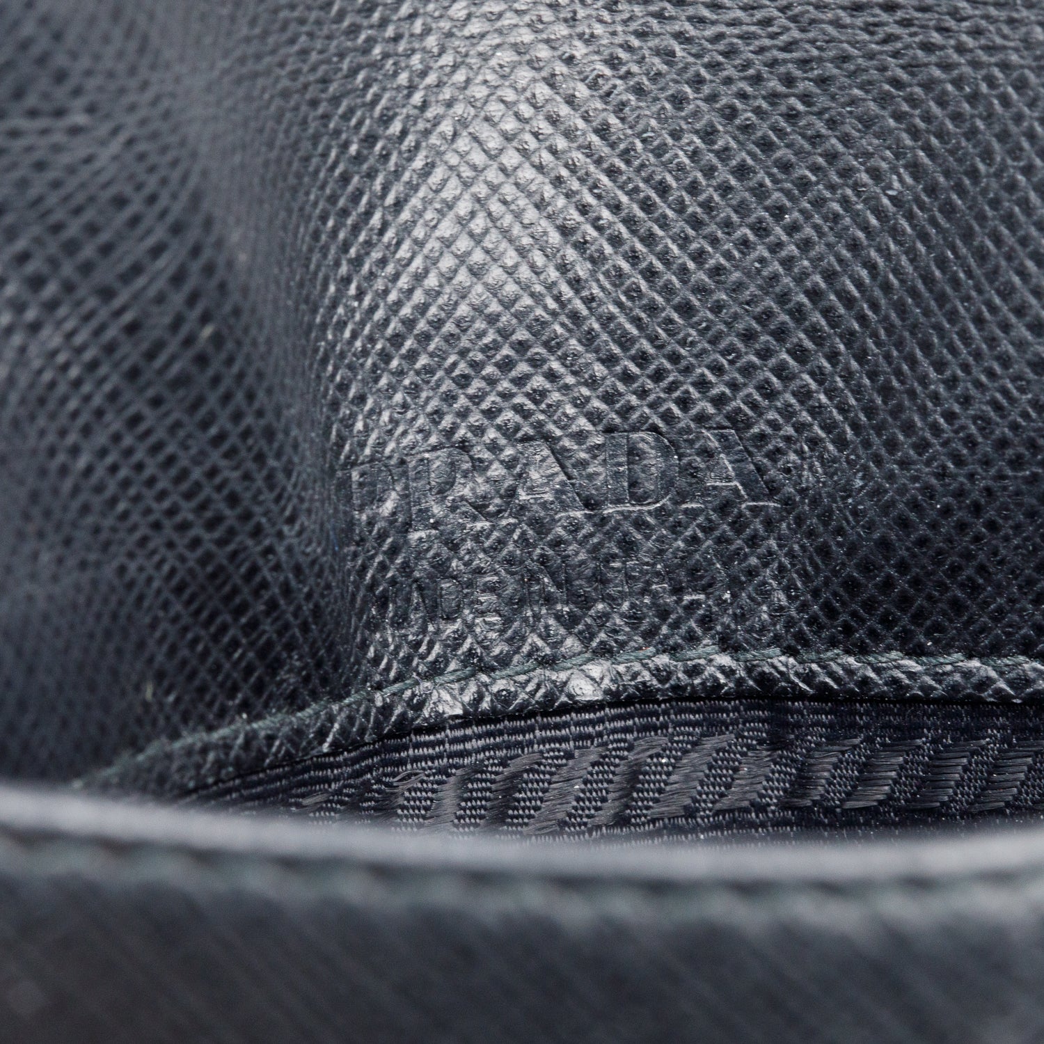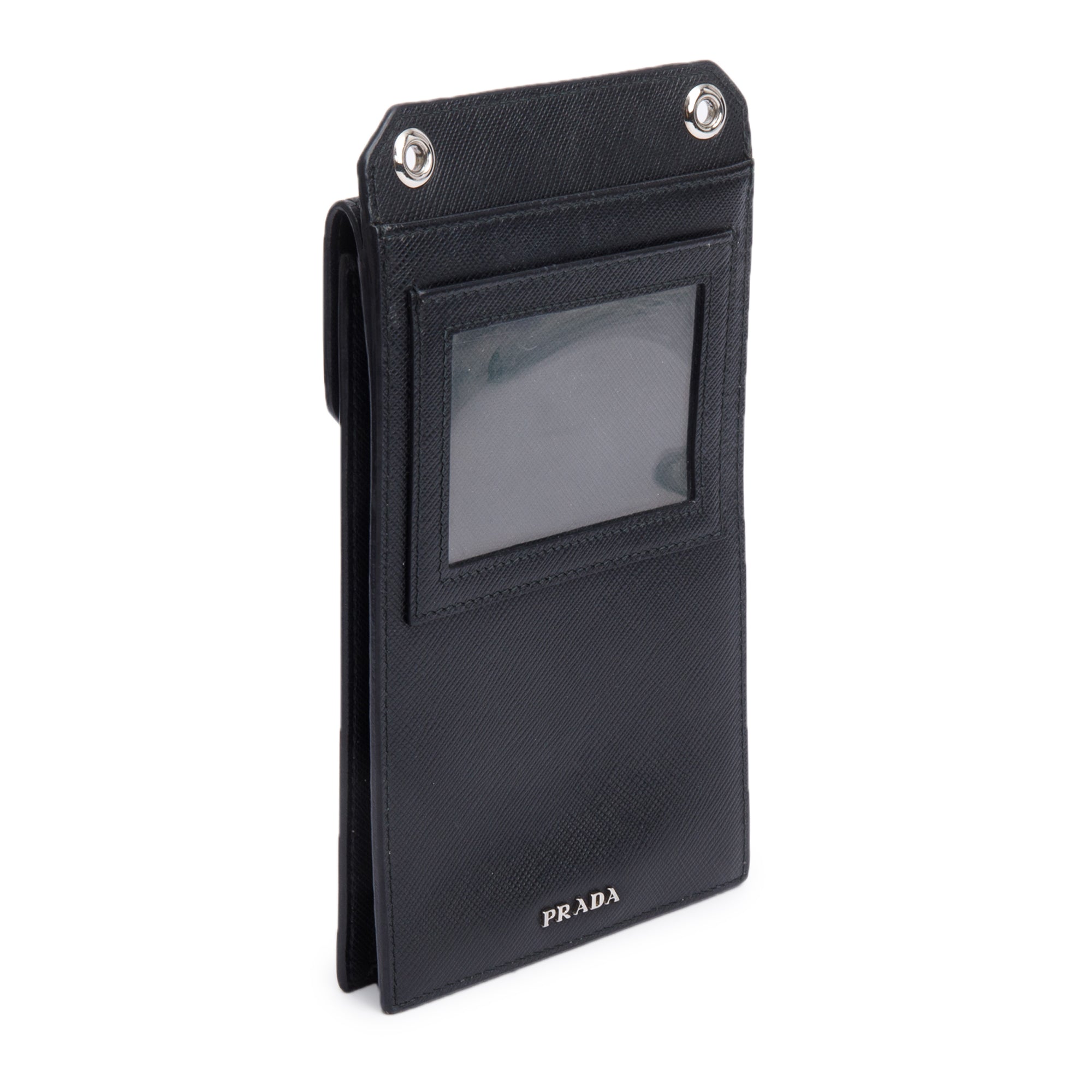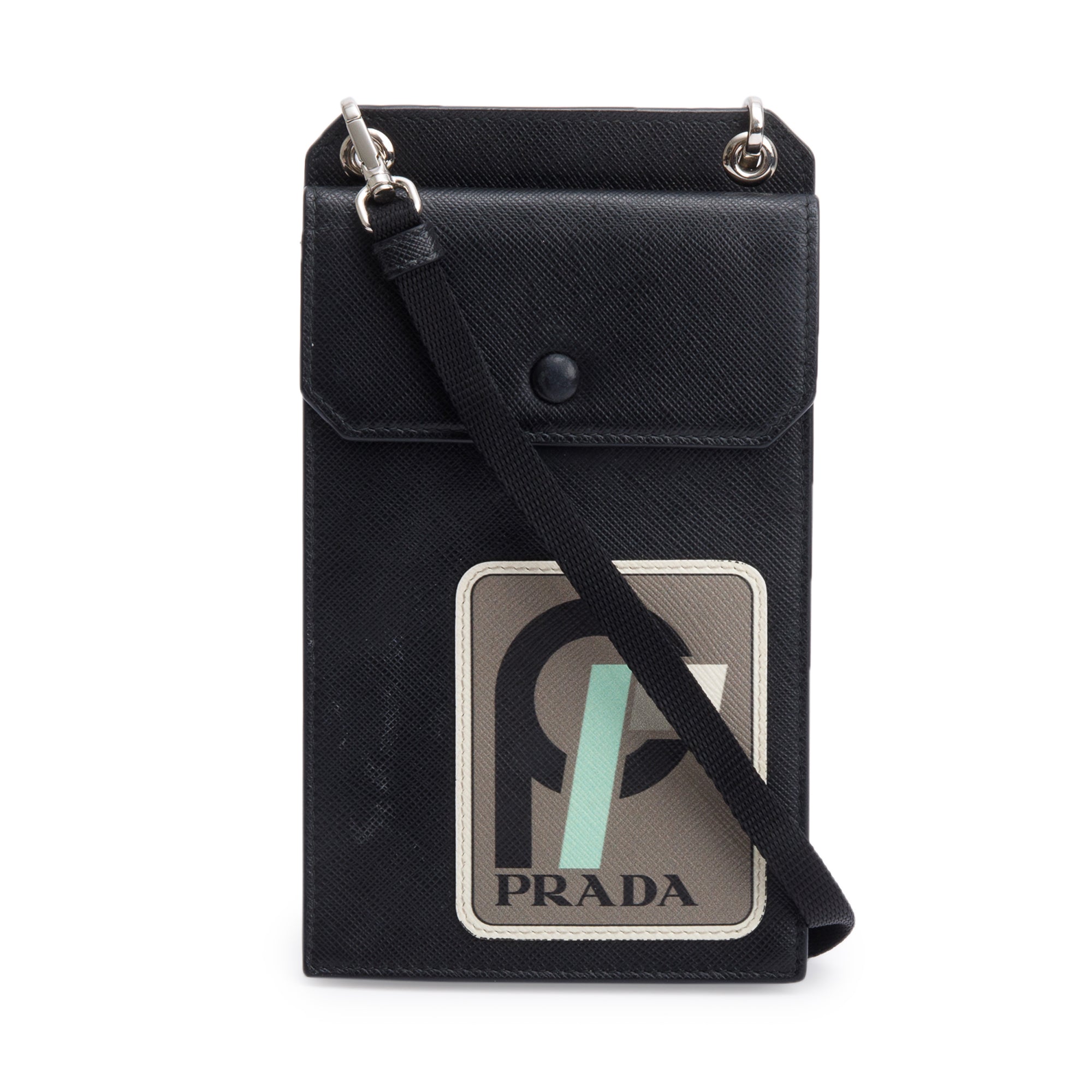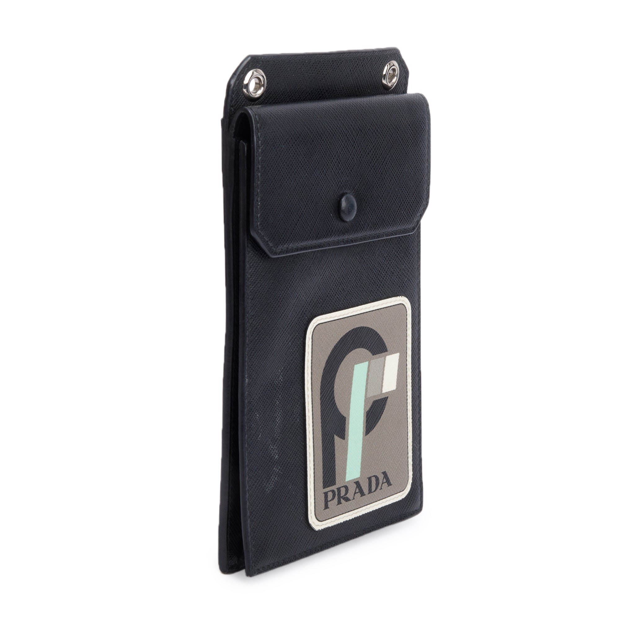 Black Saffiano Lux Leather Racing Logo Patch Phone Pouch Crossbody Bag