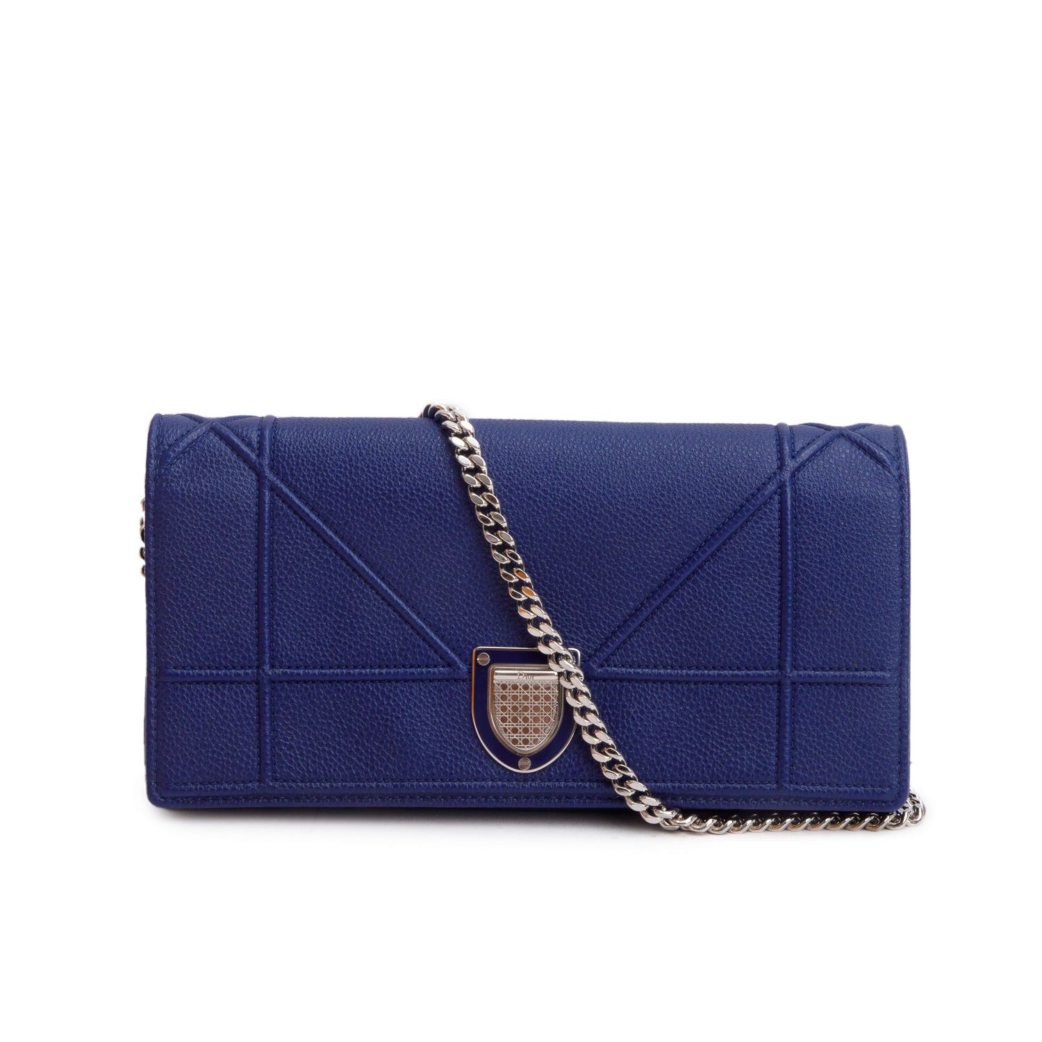 Blue Grained Calfskin Leather Diorama Croisiere Wallet on Chain w/ Box