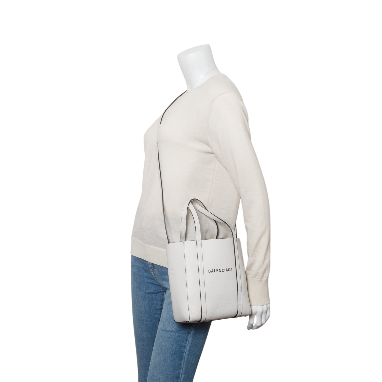 White Smooth Calfskin Logo XXS Everyday Tote w/ Strap