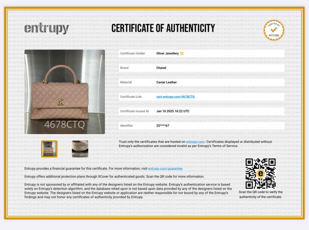 Dust Bag, Authenticity Card, Strap, Entrupy Certificate of Appraisal