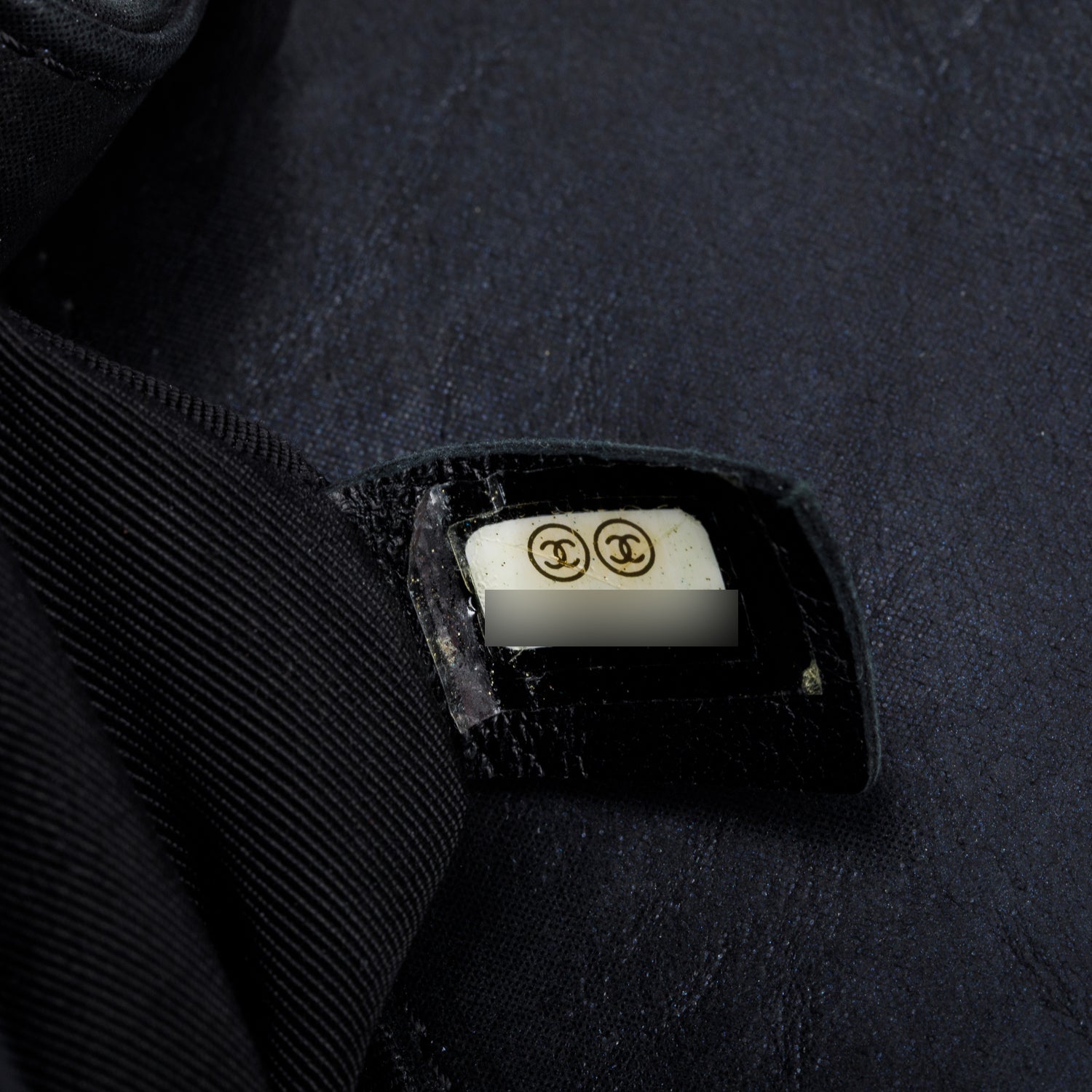 Black Quilted Iridescent Calfskin Leather Medium Beaded Double Stitch Boy Bag