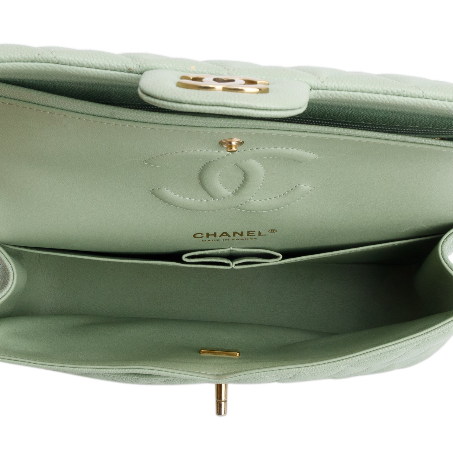 Green Caviar Quilted Medium Double Flap Bag w/ Box