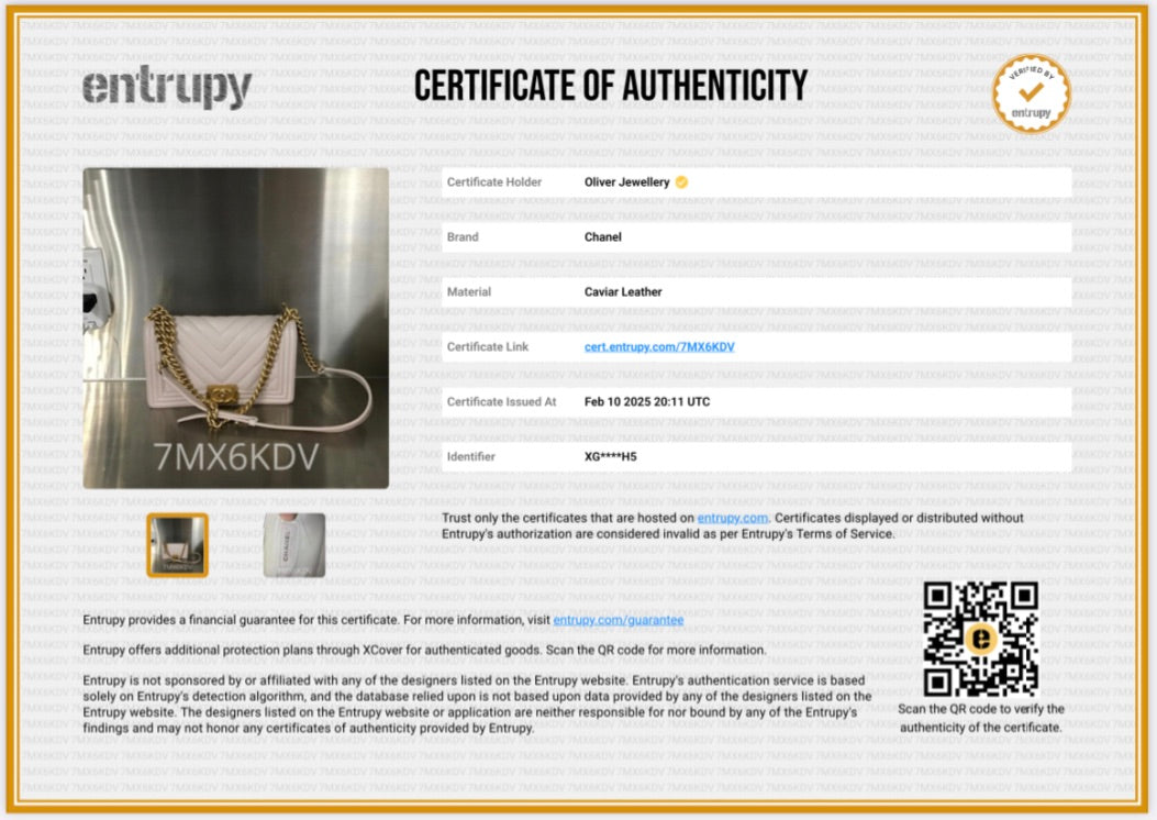 Entrupy Certificate of Authenticity