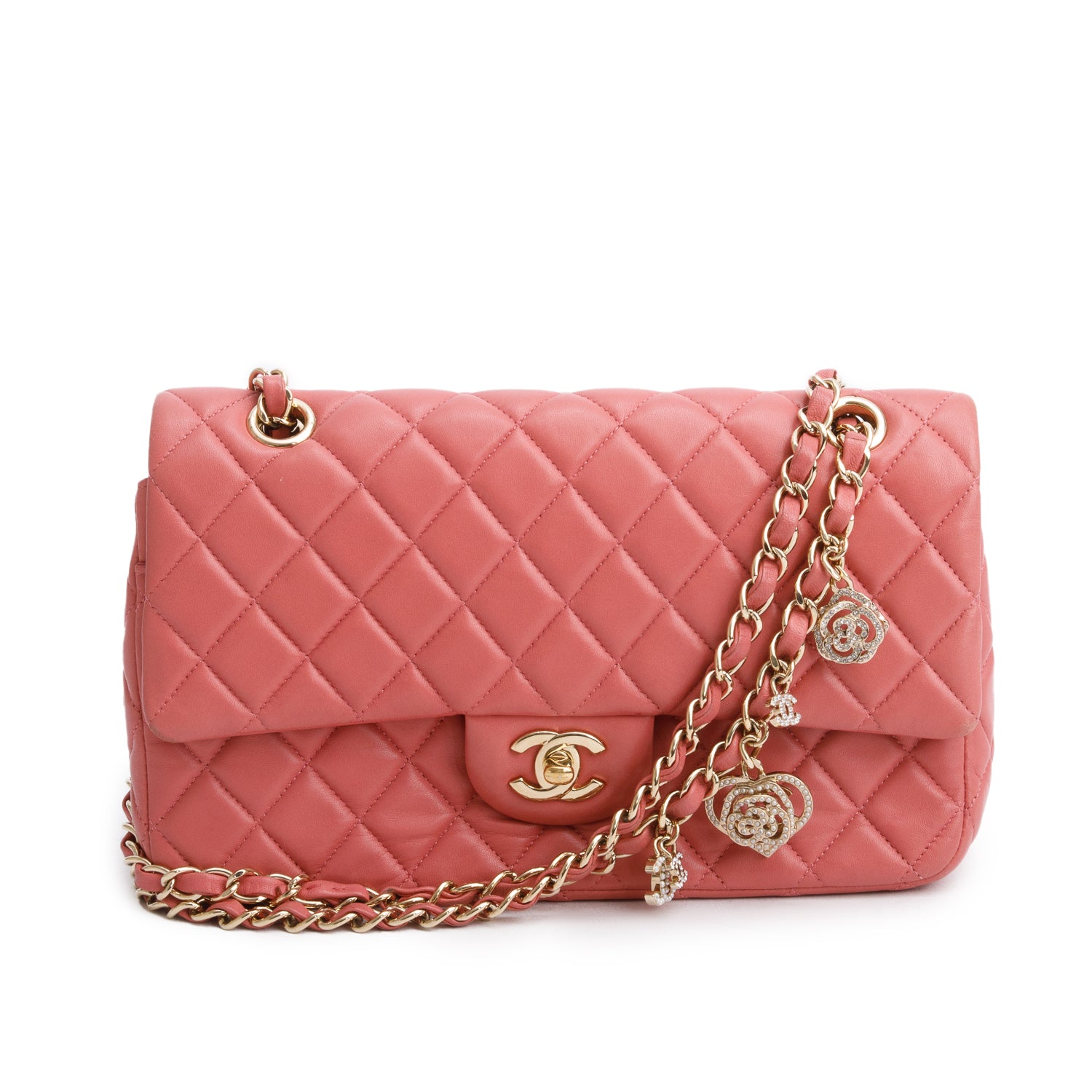Pink Lambskin Quilted Valentine Charms Medium Single Flap w/ Authenticity Card