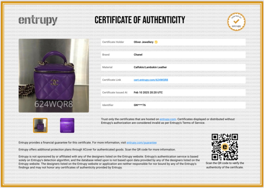 Entrupy Certificate of Authenticity