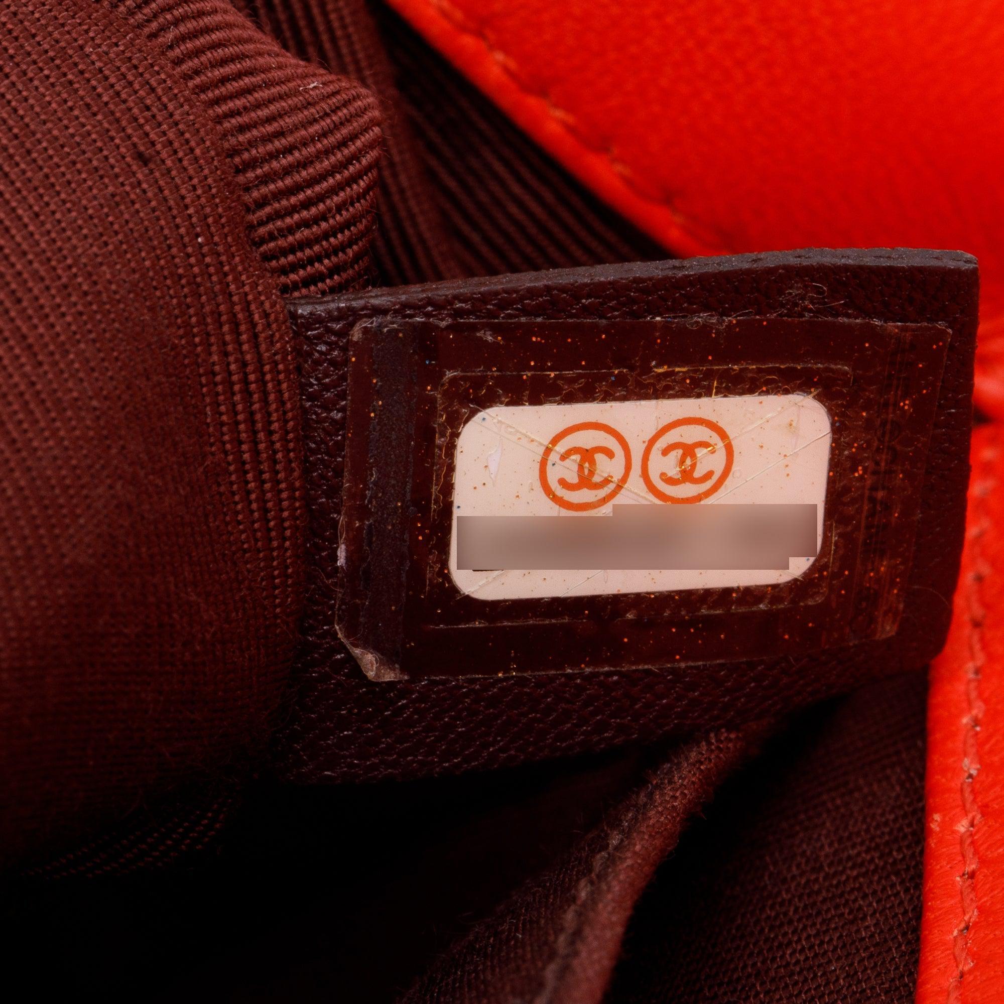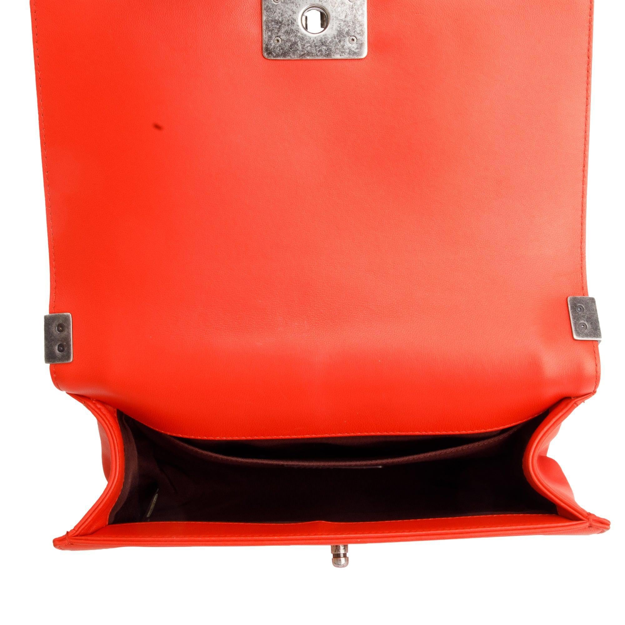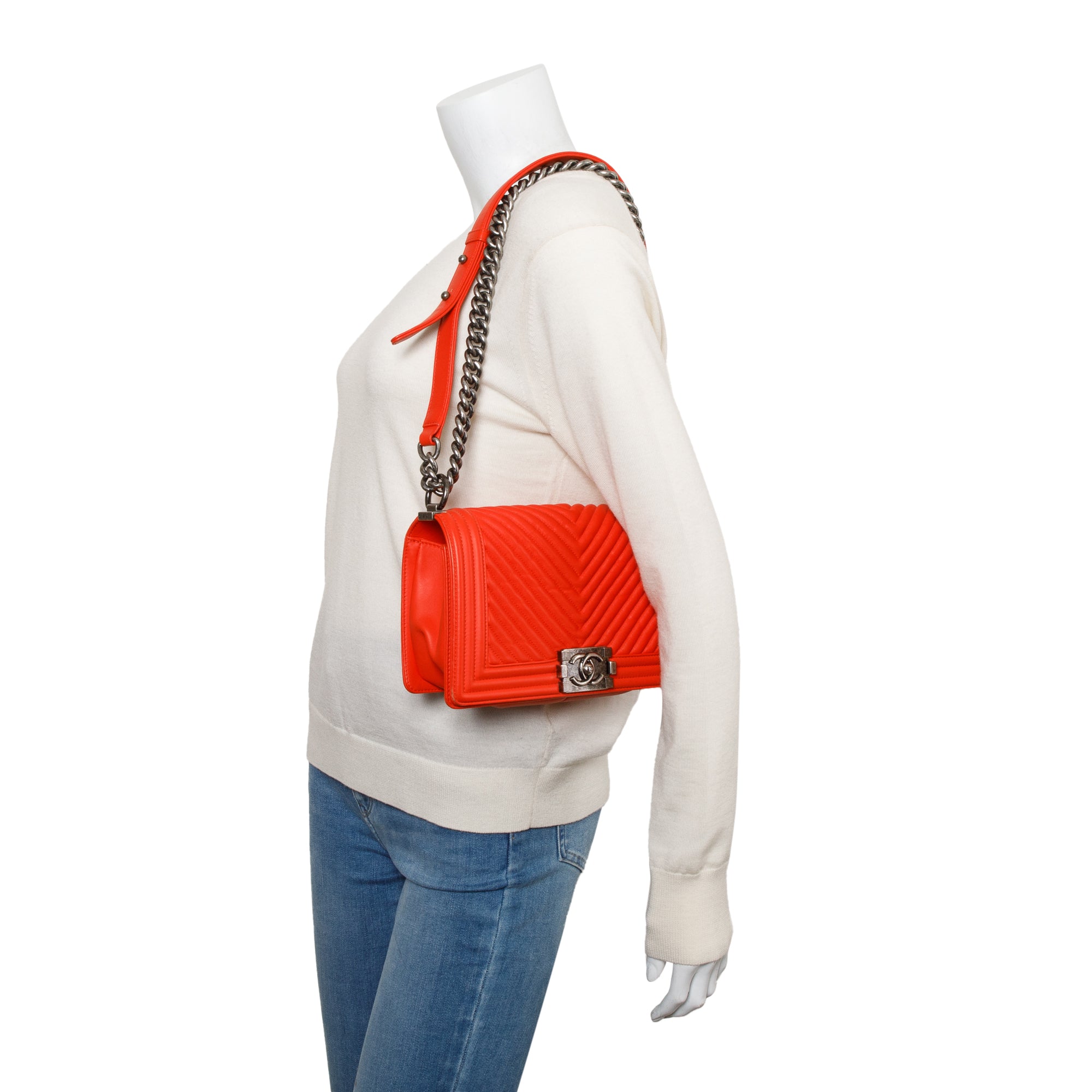 Red Chevron Calfskin Leather Medium Boy Bag w/ Authenticity Card