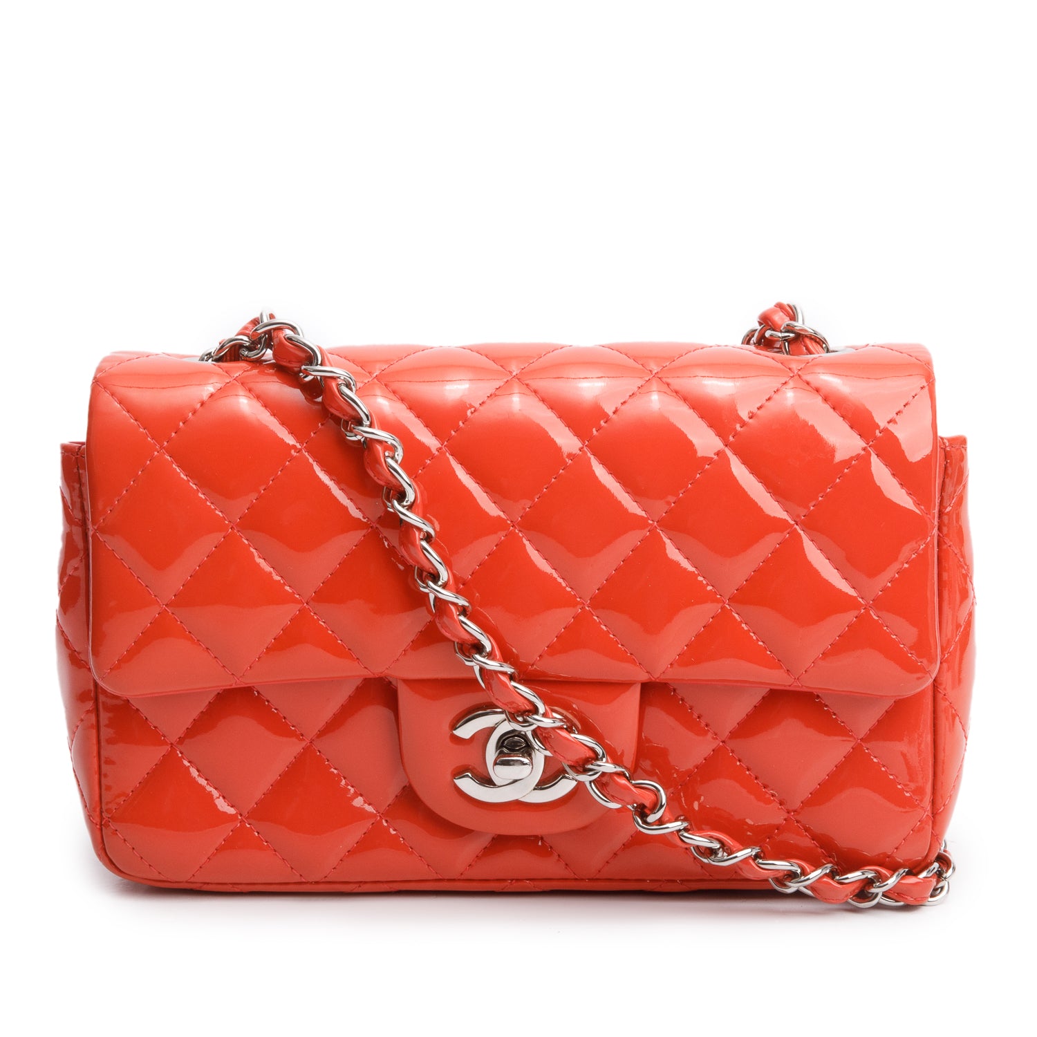 Red Quilted Patent Leather Classic Mini Rectangular Flap Bag w/ Authenticity Card