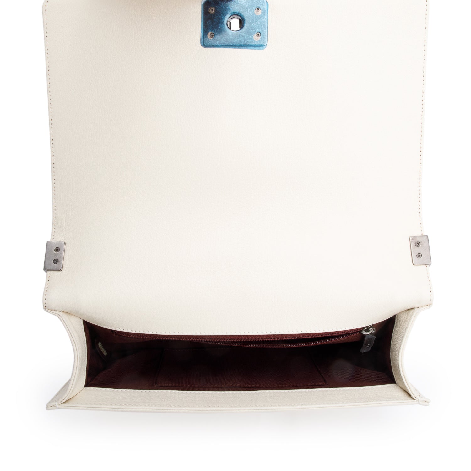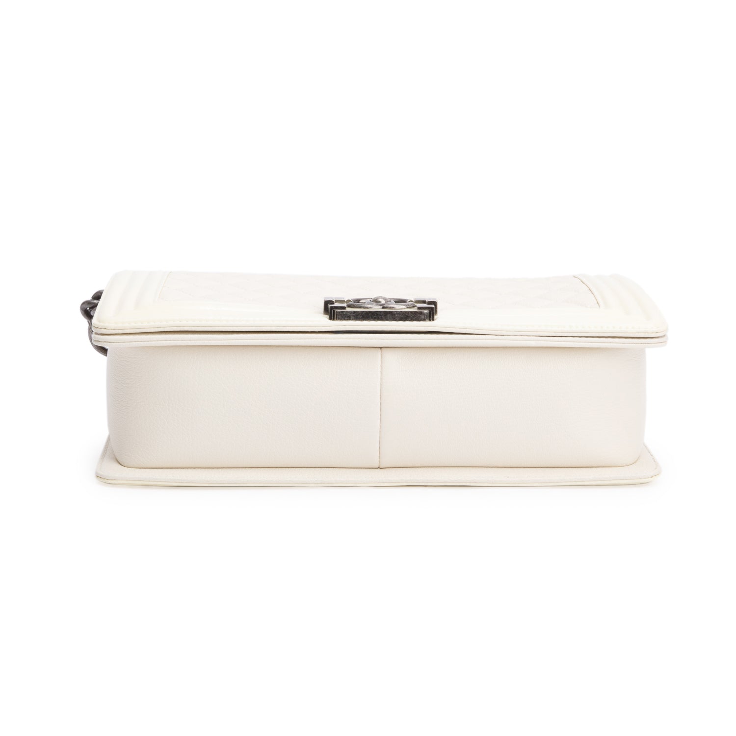 White Quilted Calfskin and Patent Leather Trim Large Boy Bag w/ Box & Receipt