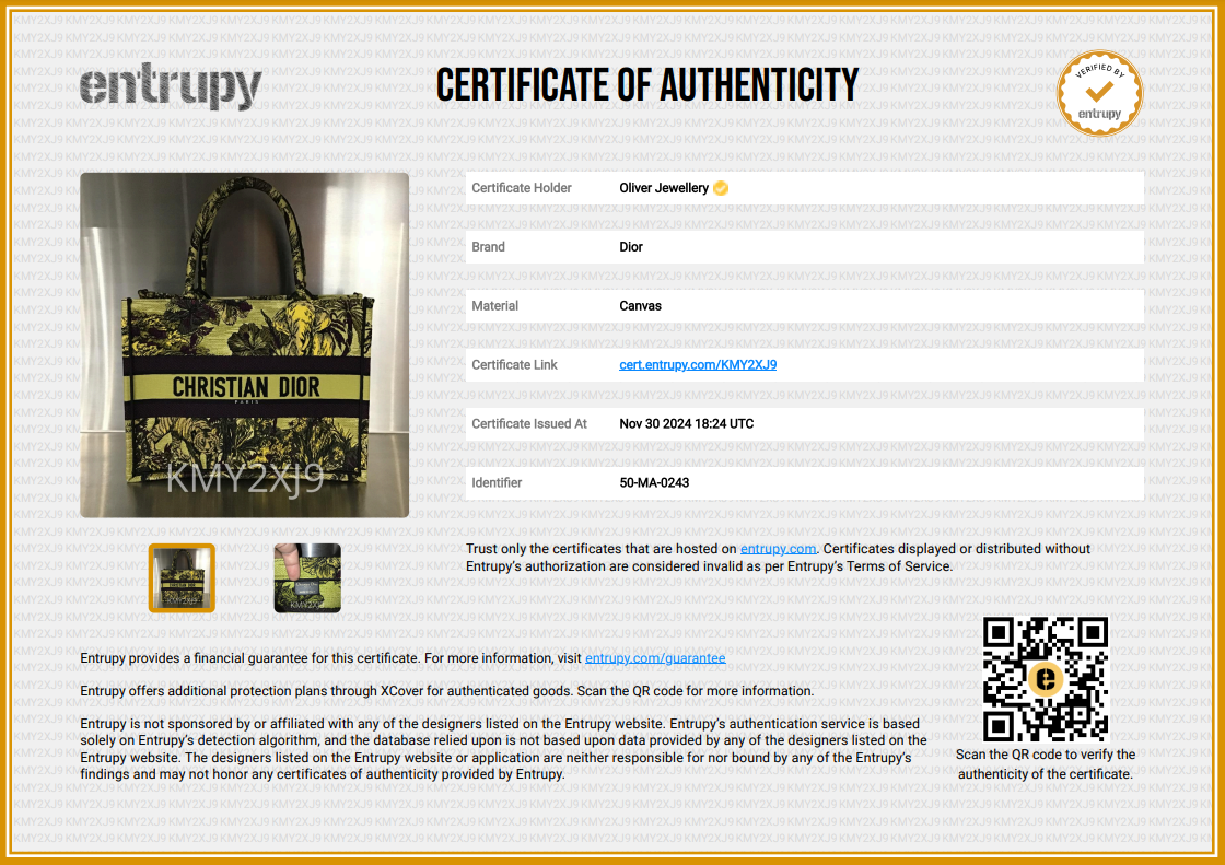 Box, Receipt, Dust Bag, Entrupy Certificate of Authenticity