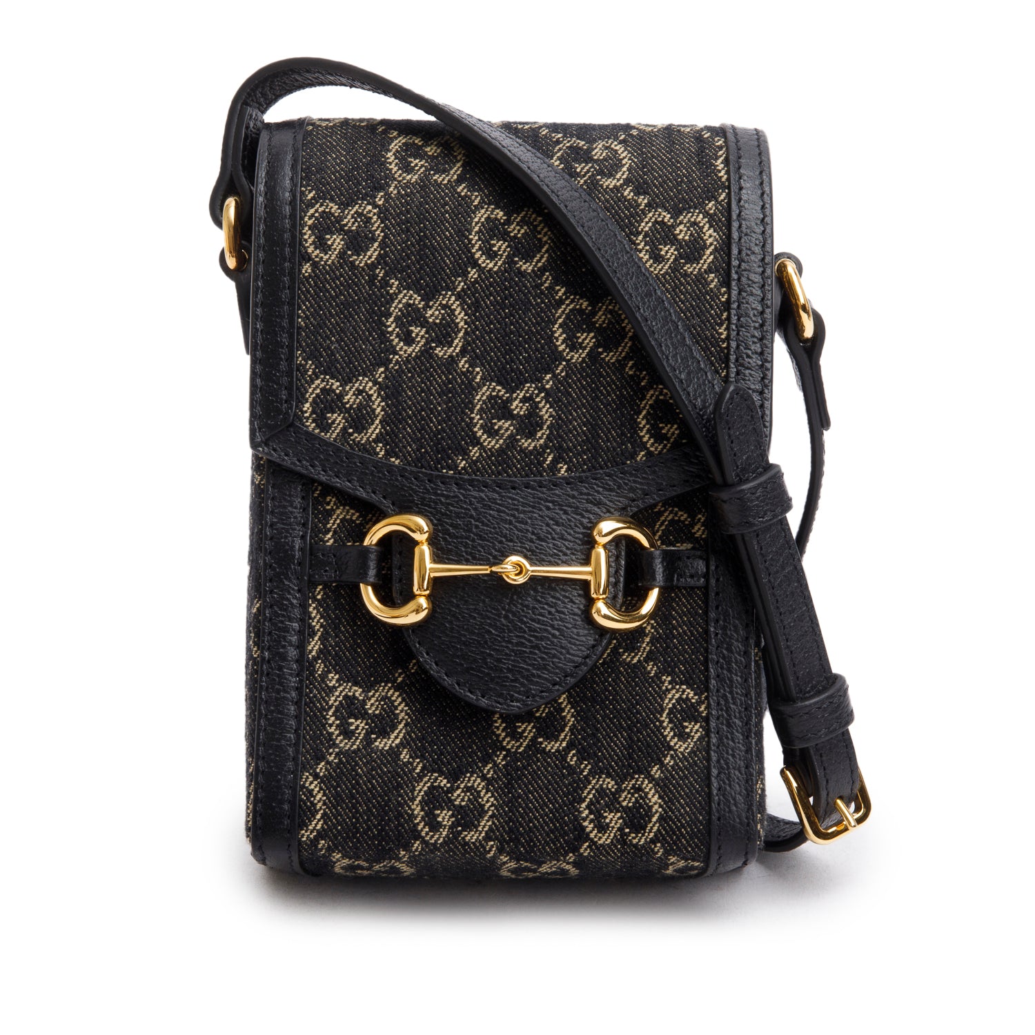 Black GG Supreme Denim Monogram Mini Horsebit 1955 Crossbody Bag