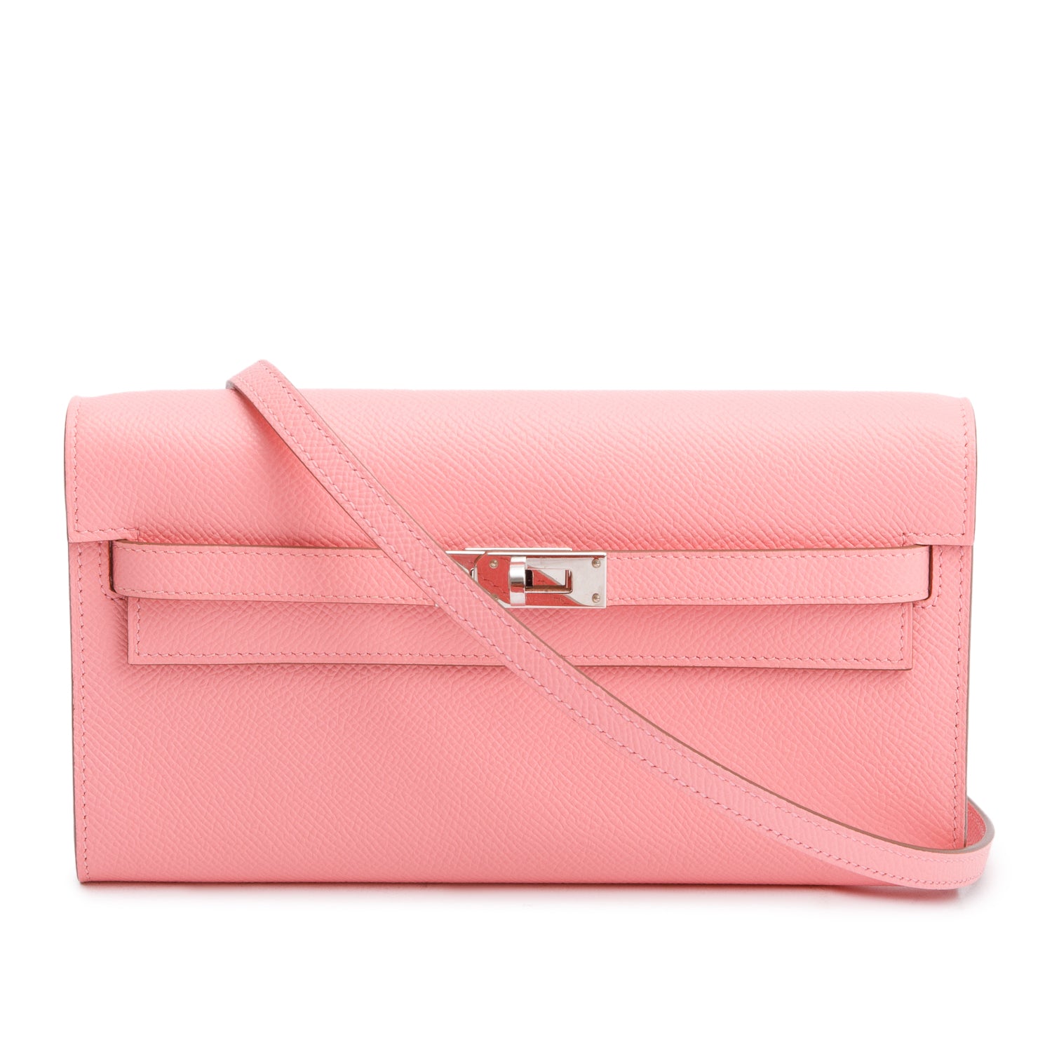 2023 Rose Azalee Epsom Leather Kelly Wallet To Go w/ Strap