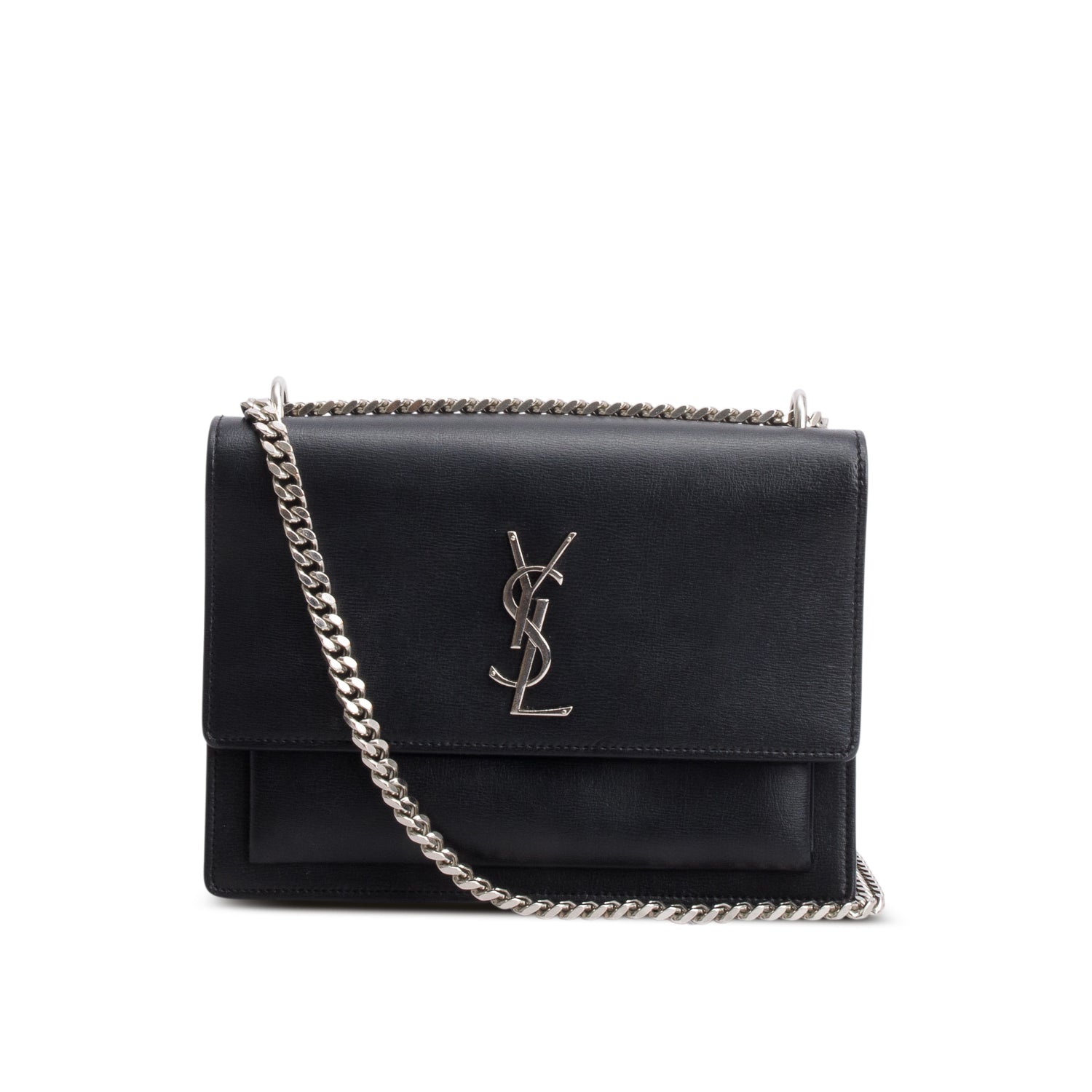 Black Calfskin Leather Medium Sunset Shoulder Bag w/ Box & Receipt