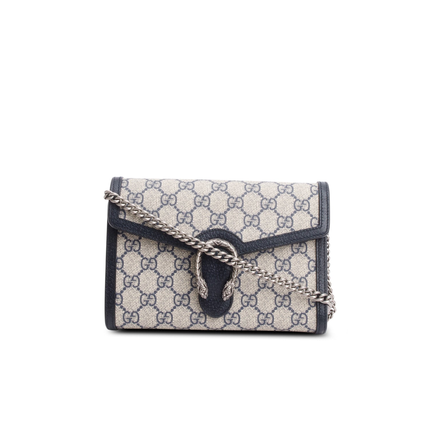Beige/Blue Dionysus GG Supreme Wallet on Chain w/ Box & Receipt