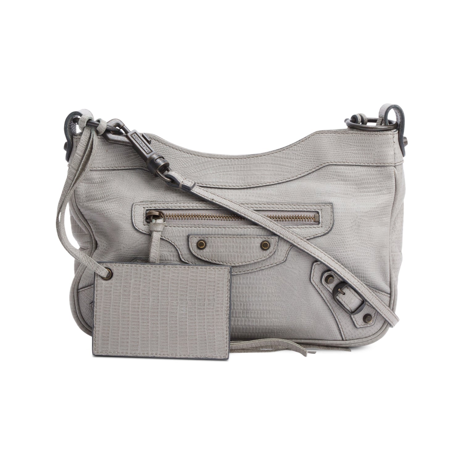 Grey Agneau Leather Classic Motorcycle Hip Crossbody