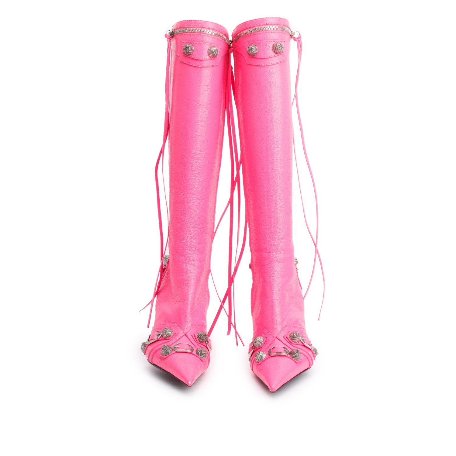 Pink Arena Leather Cagole Knee High Boots, Size 37 w/ Box