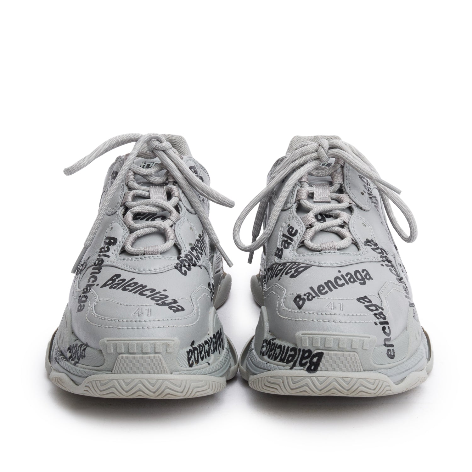 Grey Leather All Over Logo Triple S Chunky Sneakers, Men's Size 41 w/ Box
