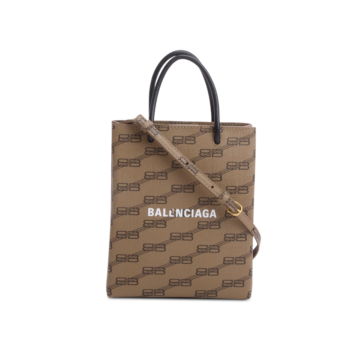 Brown Coated Canvas BB Monogram Print Tote Bag w/ Strap