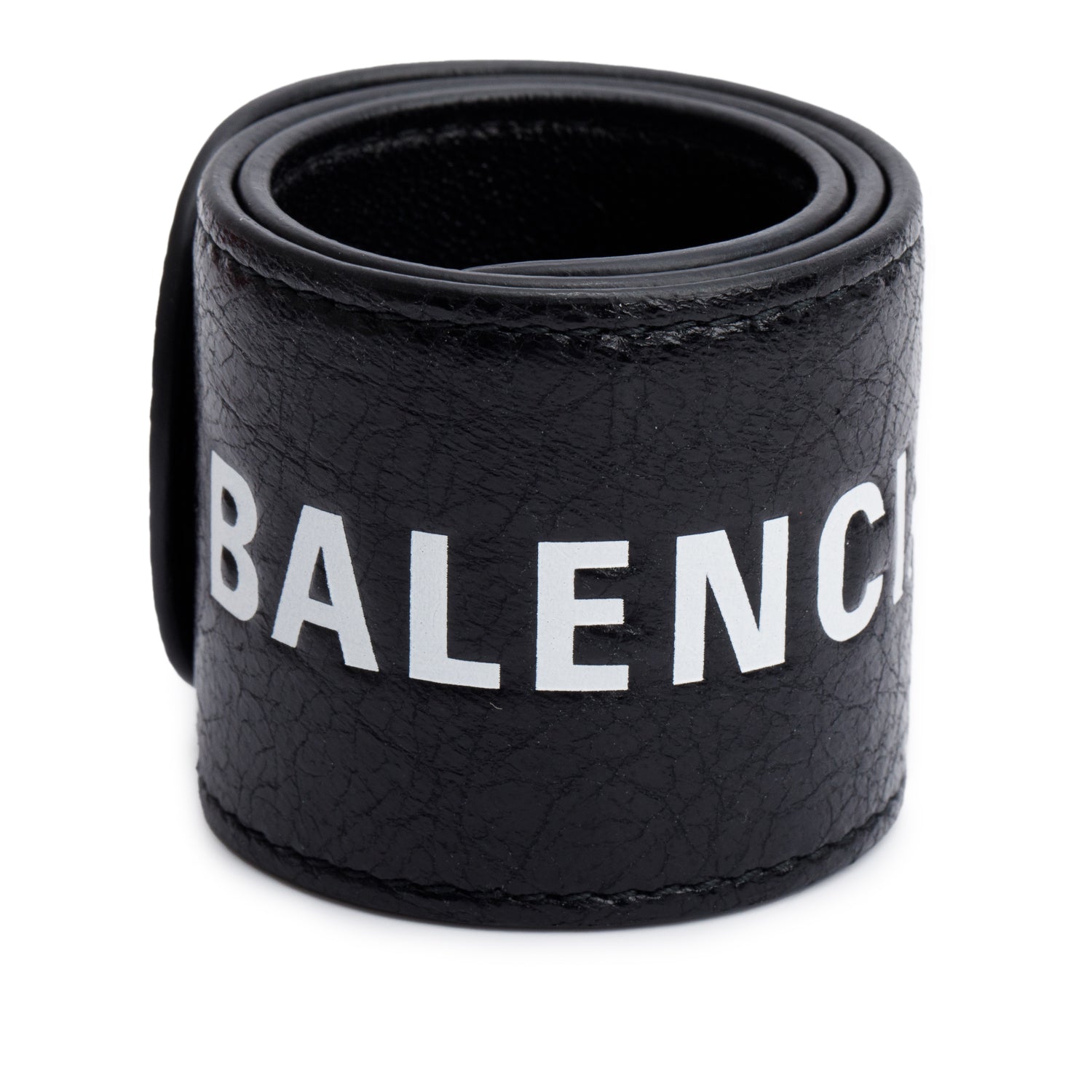Black Leather Logo Slap Bracelet