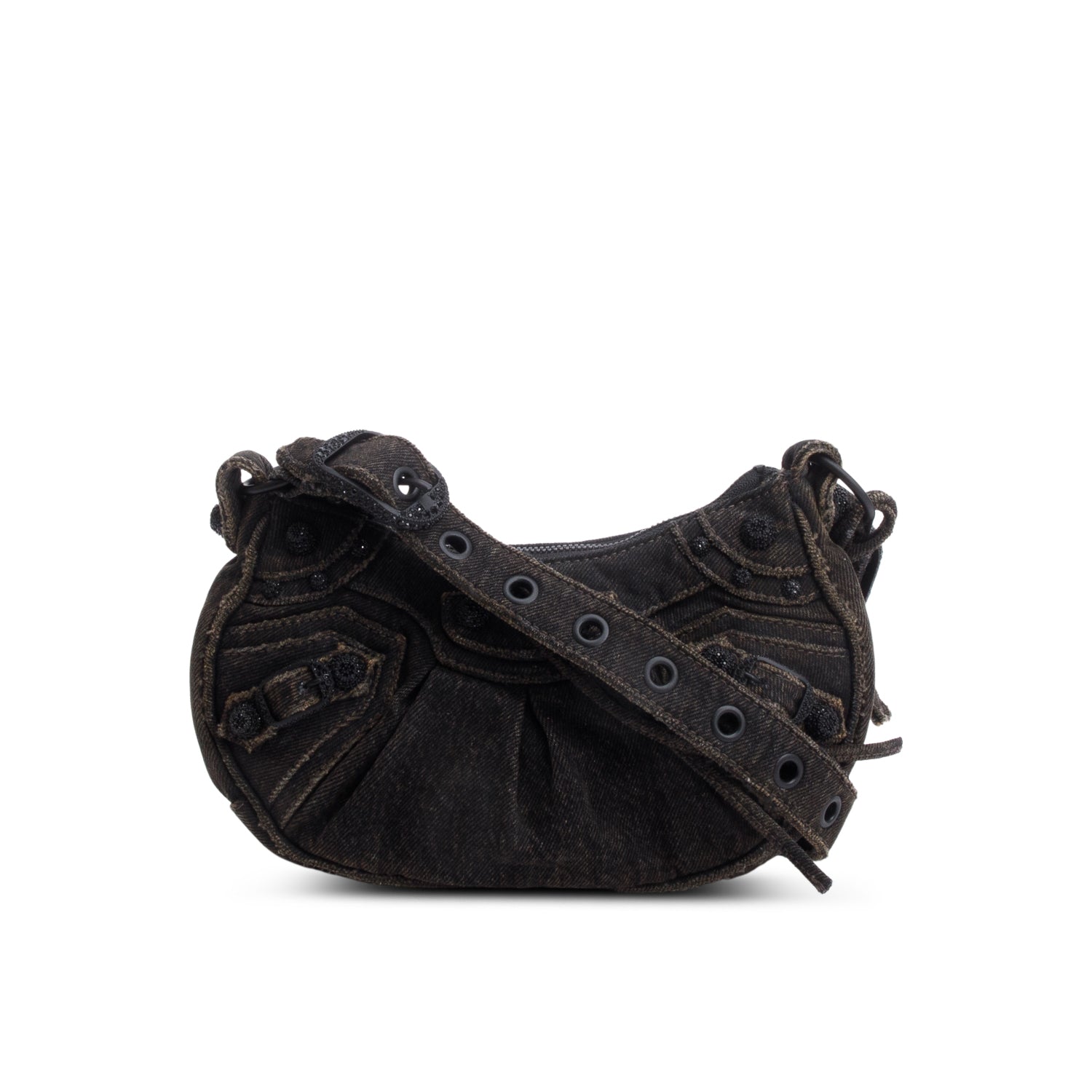 Black Washed Frayed Denim Crystal Le Cagole XS