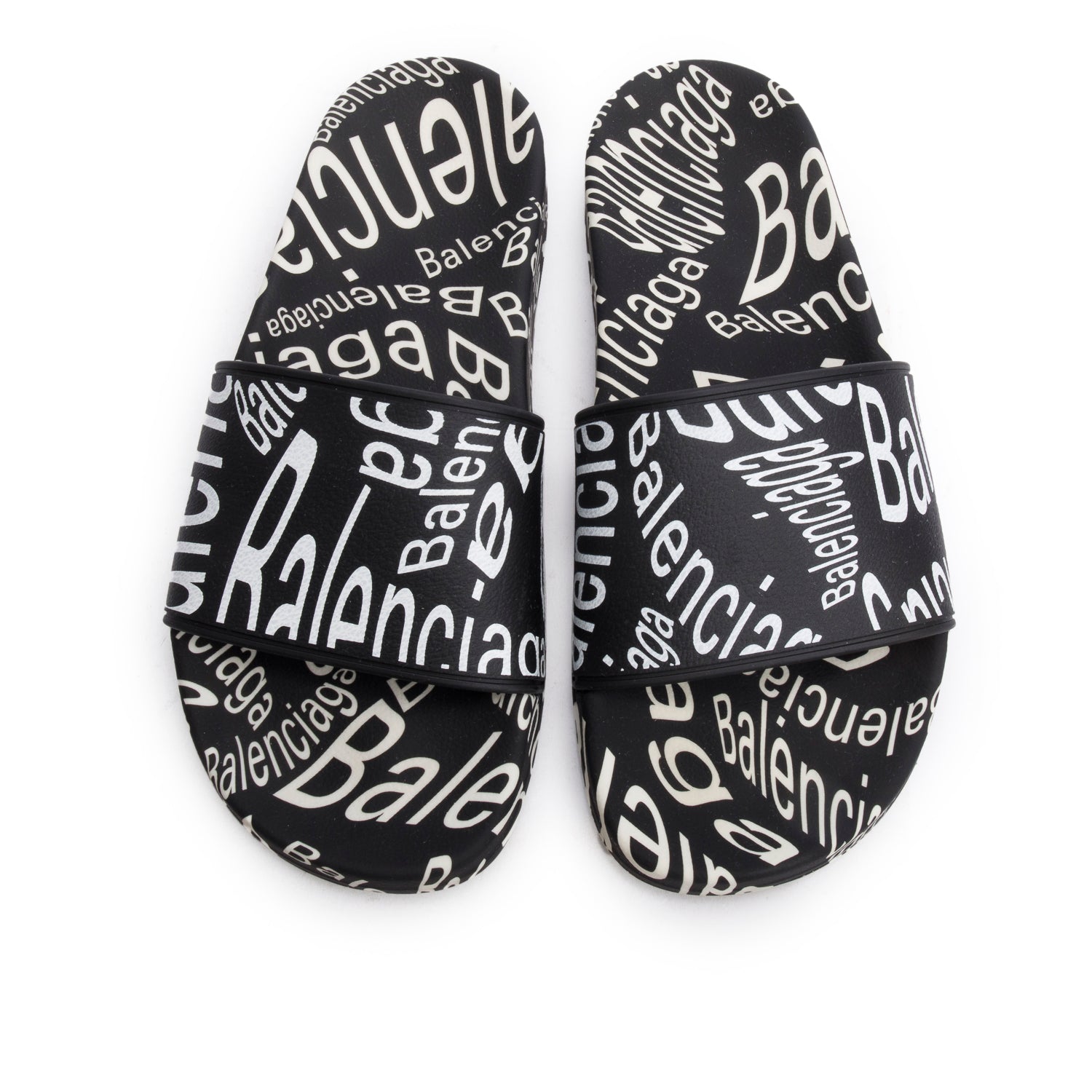 Black/White Rubber All Over Logo Print Pool Slide Sandals, Size 39 w/ Box