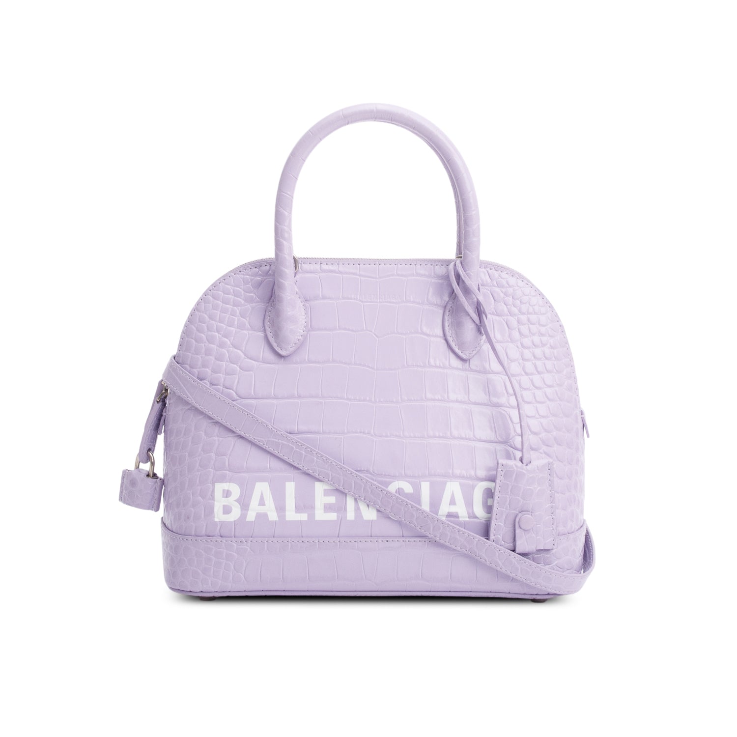 Lilac Shiny Calfskin Logo Croc Embossed S Ville Top Handle Bag w/ Strap
