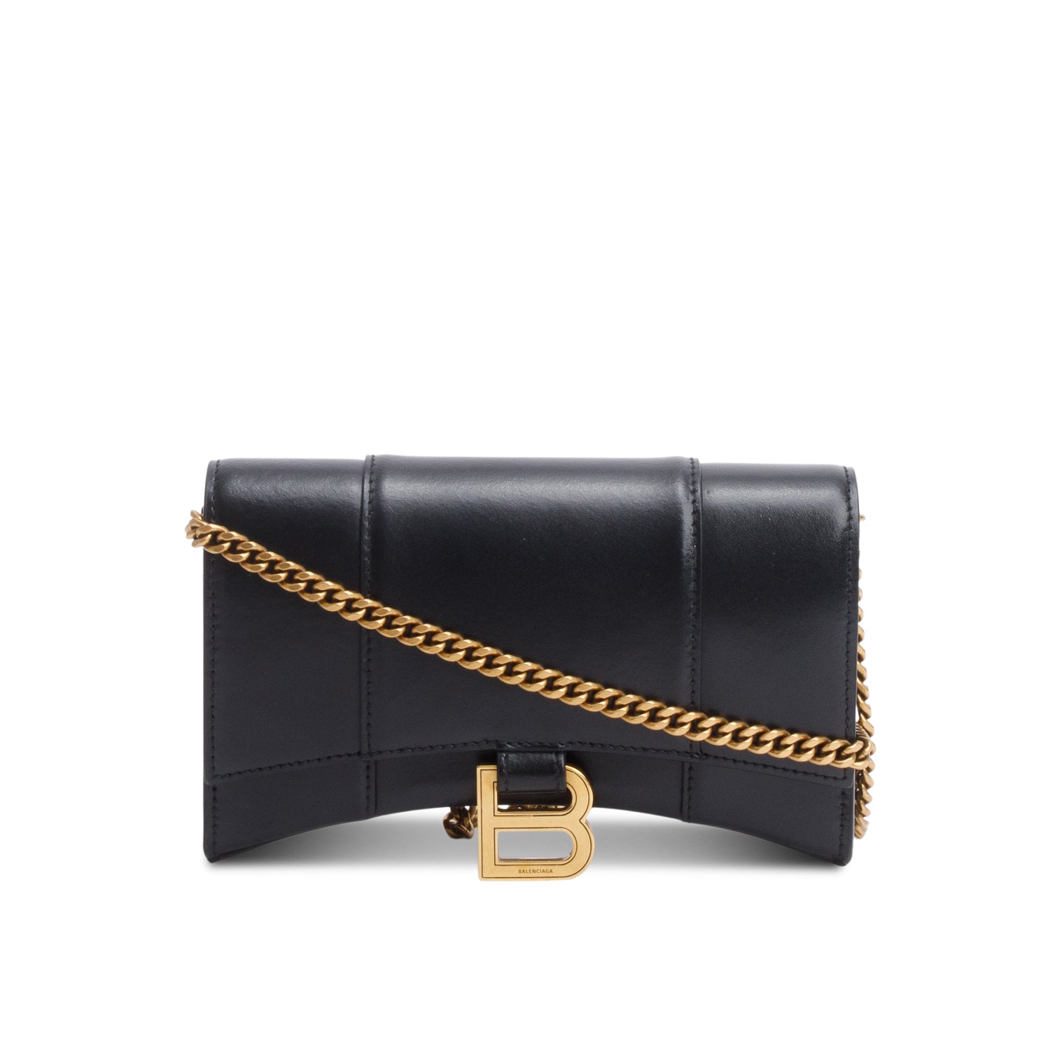 Black Smooth Leather Hourglass Wallet on Chain
