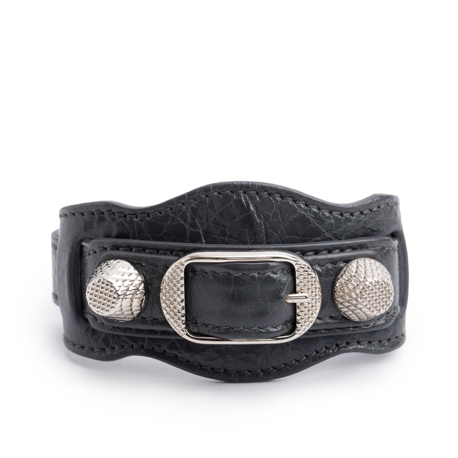 Grey Leather Classic Giant Arena Wrap Bracelet, L