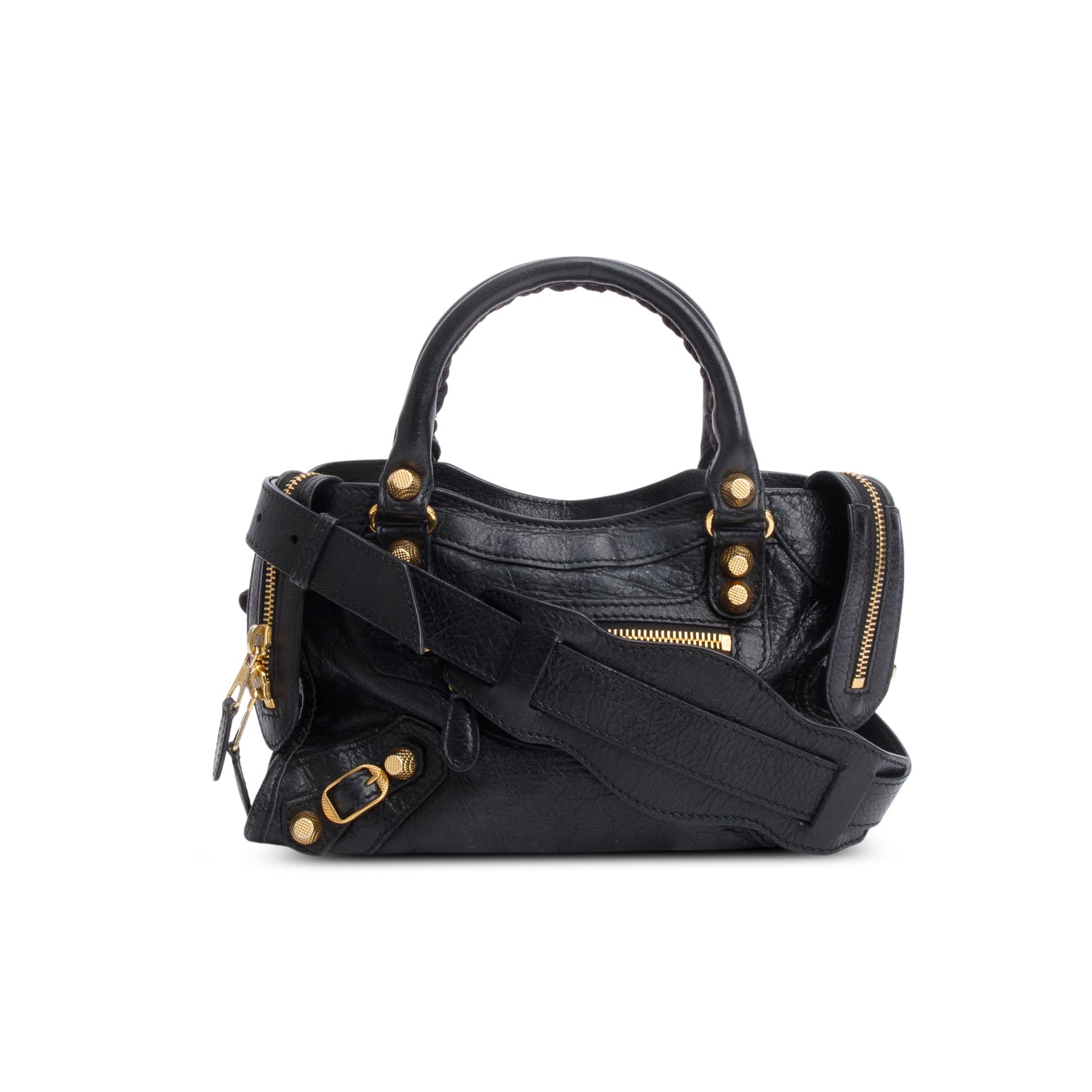 Black Agneau Leather Classic Mini City Bag w/ Strap