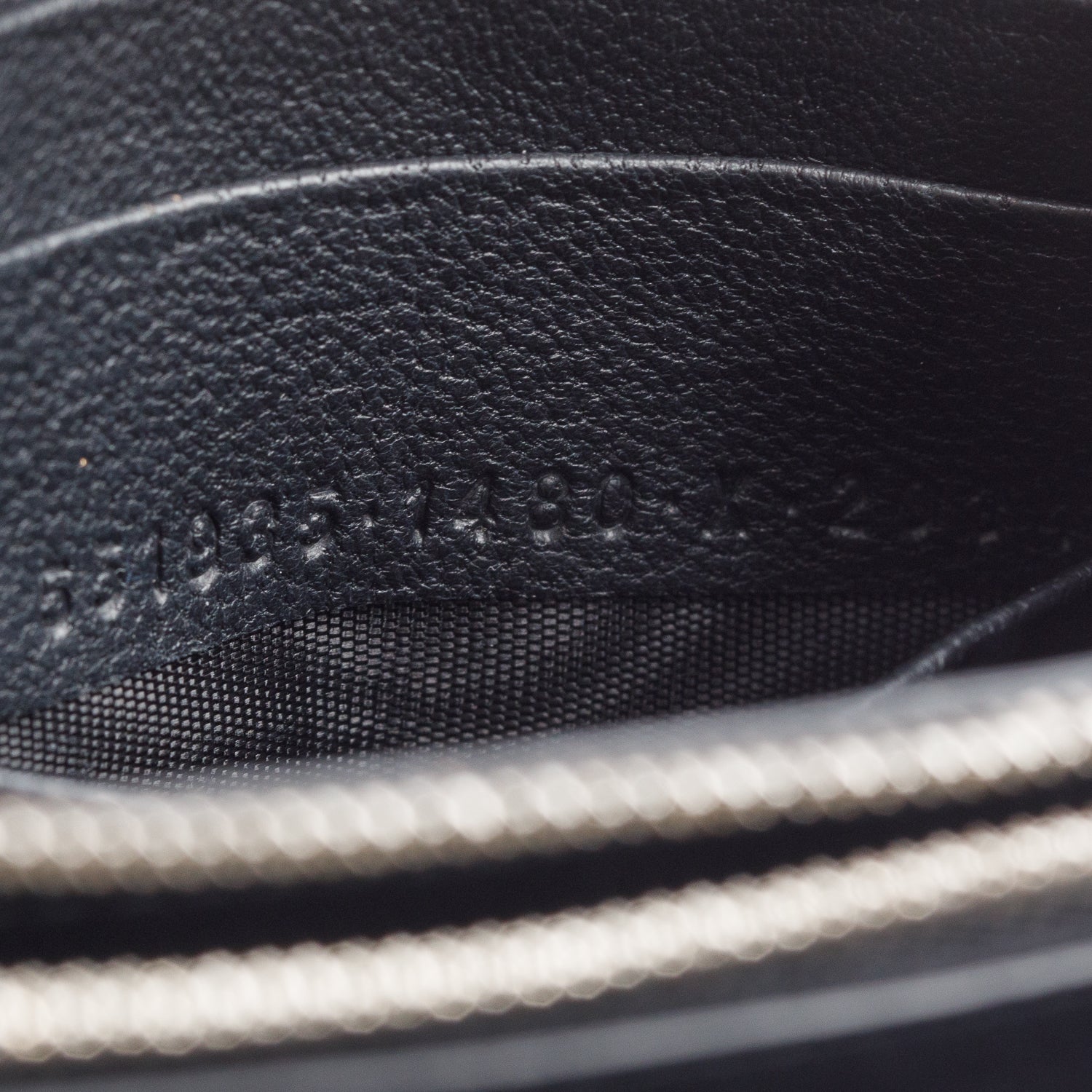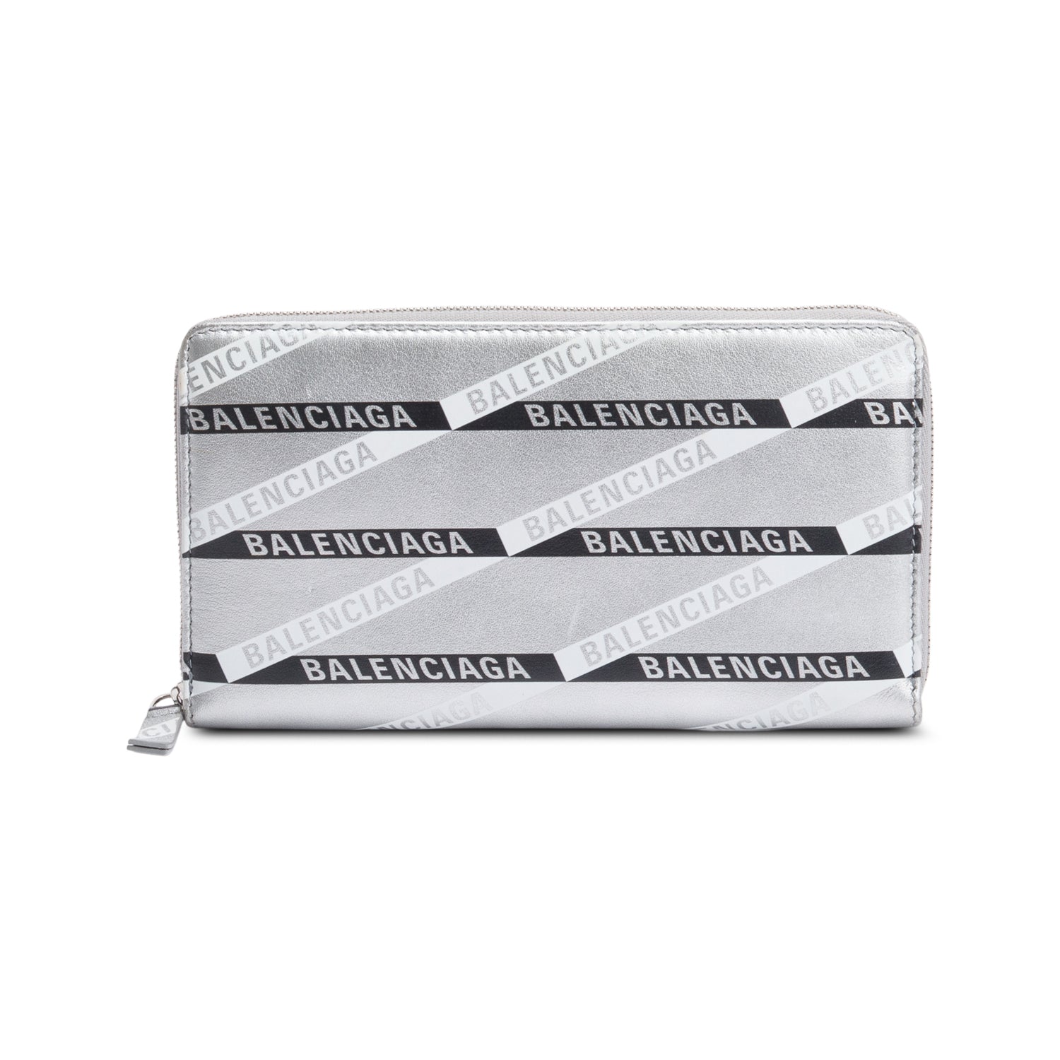 Metallic Silver Logo Print Calfskin Leather Everyday Zip Around Wallet