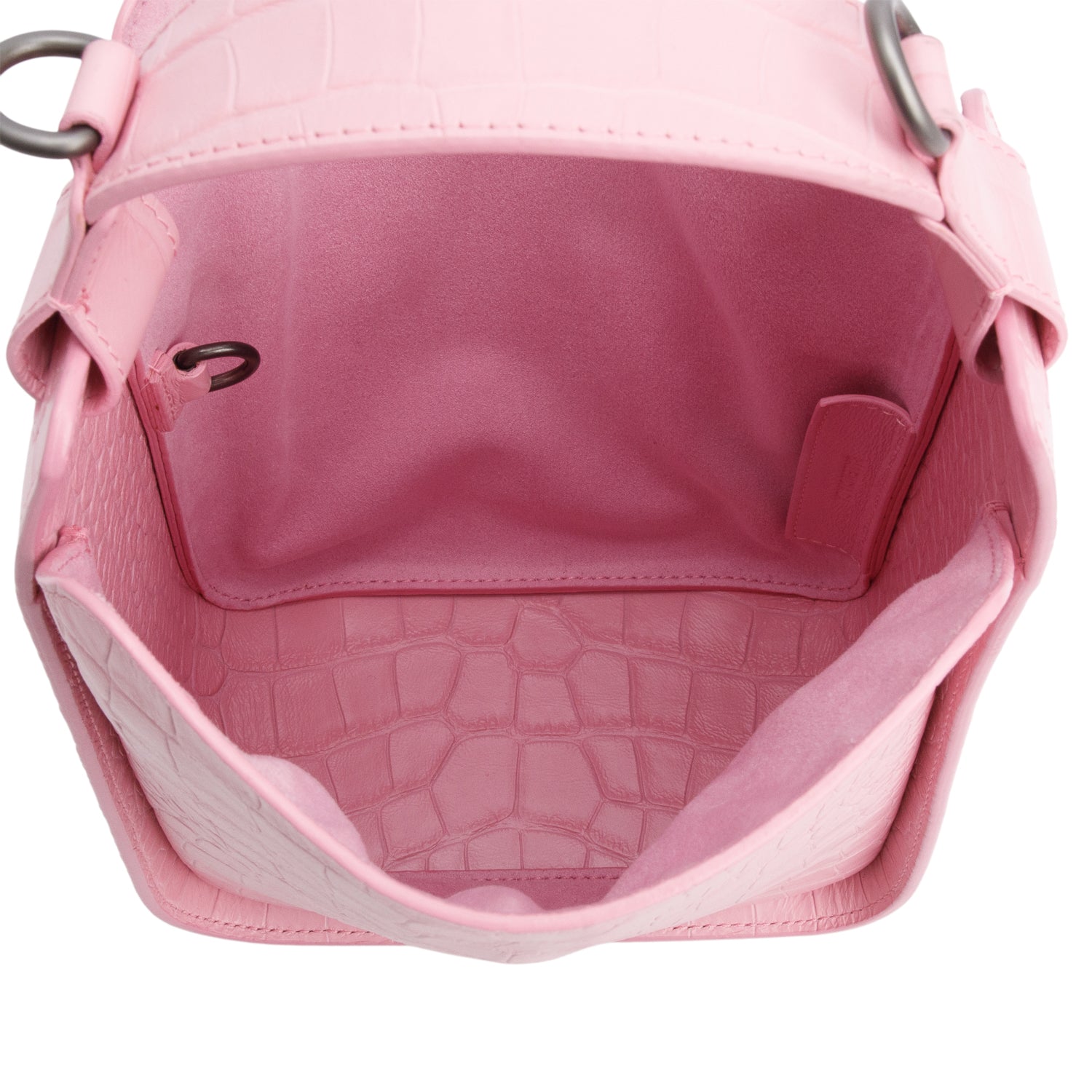 Pink Croc-Embossed Leather Tool 2.0 Small N/S Tote w/ Strap