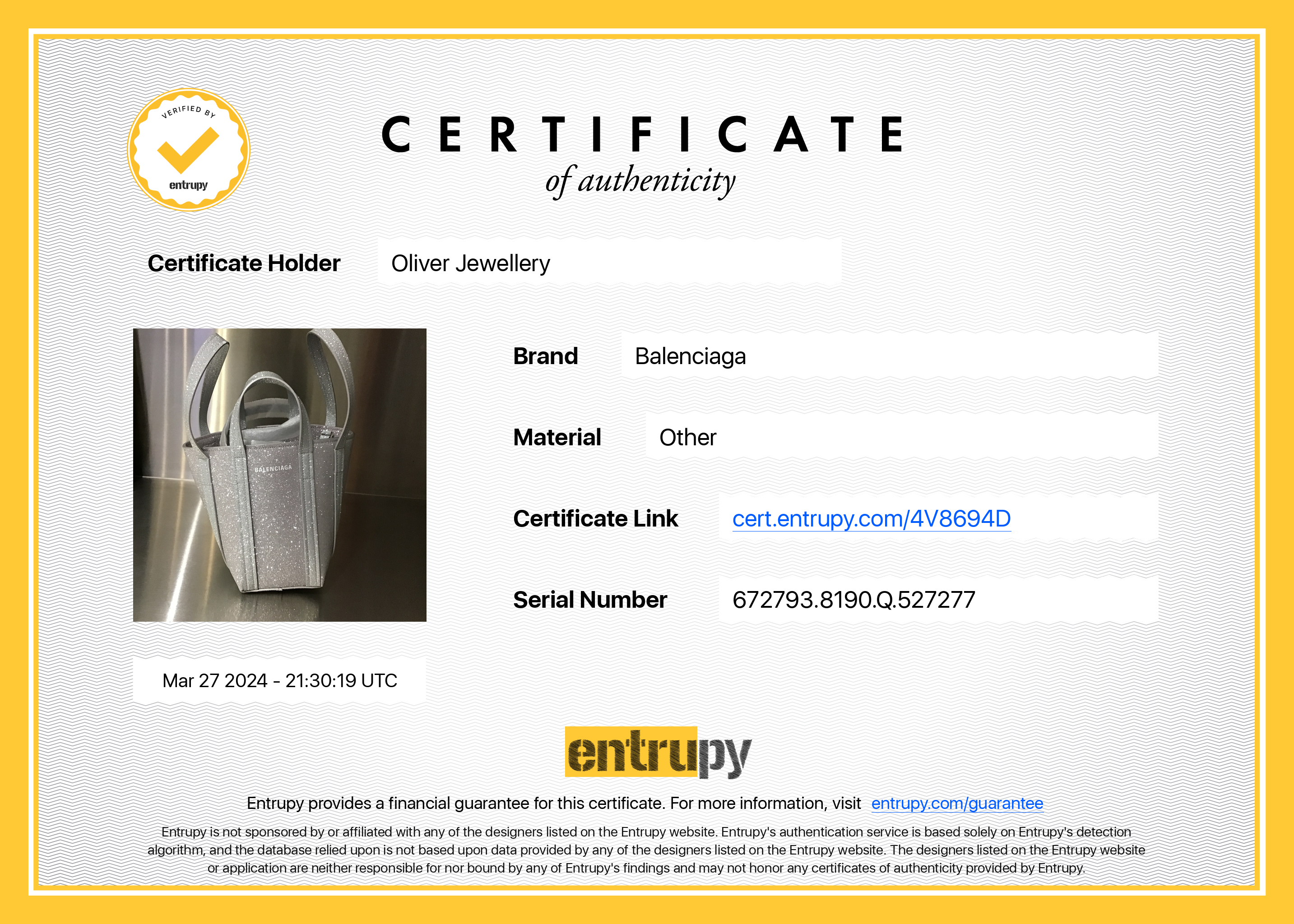 Box, Dust Bag, Tag, Booklet, Entrupy Certificate of Authenticity