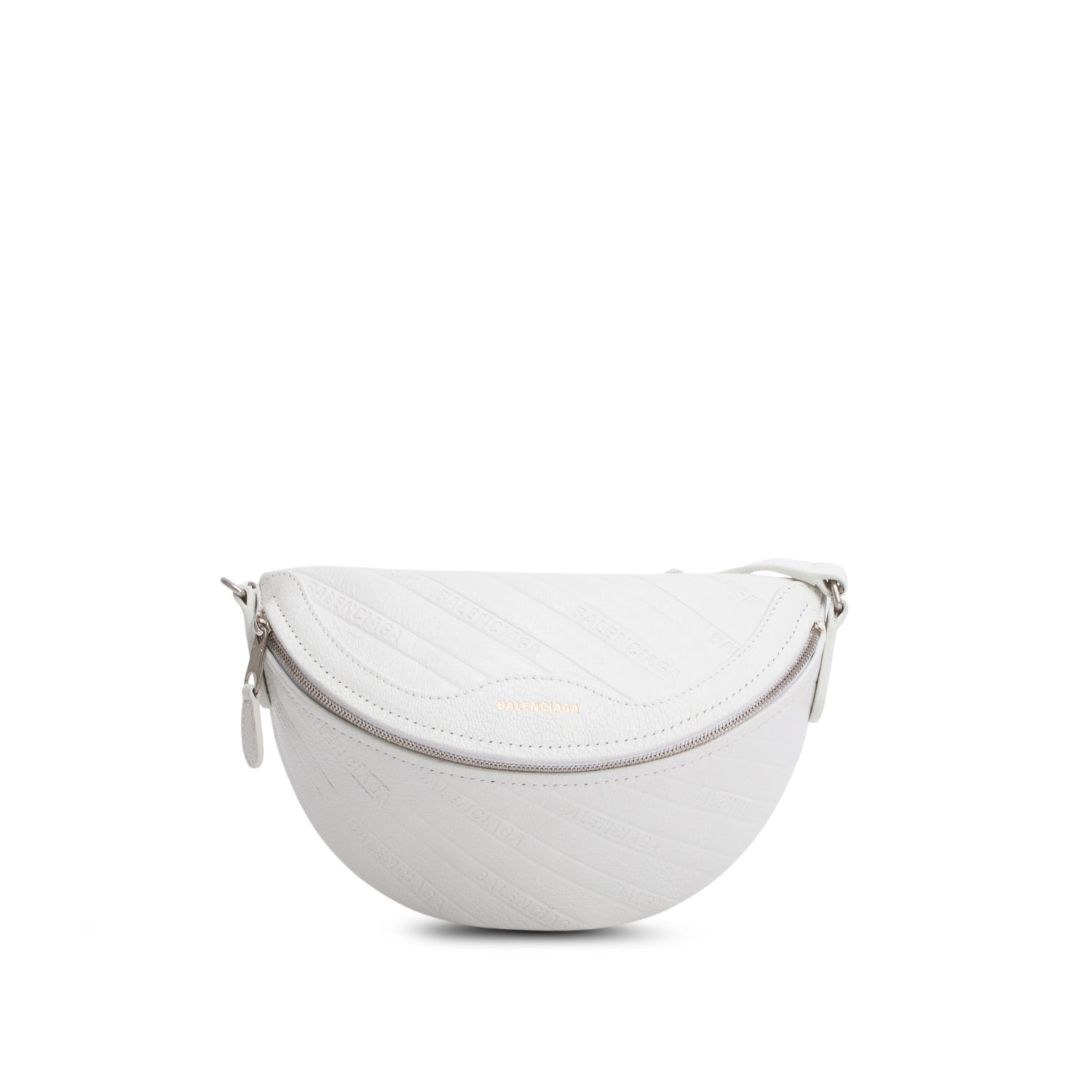 White Logo Embossed Leather XS Souvenir Belt Bag