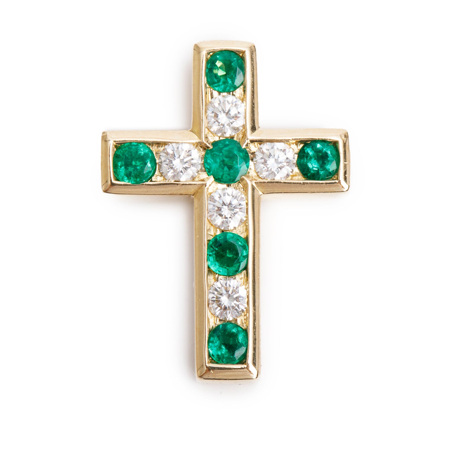 18k Yellow Gold Emerald & Diamond Cross Pendant