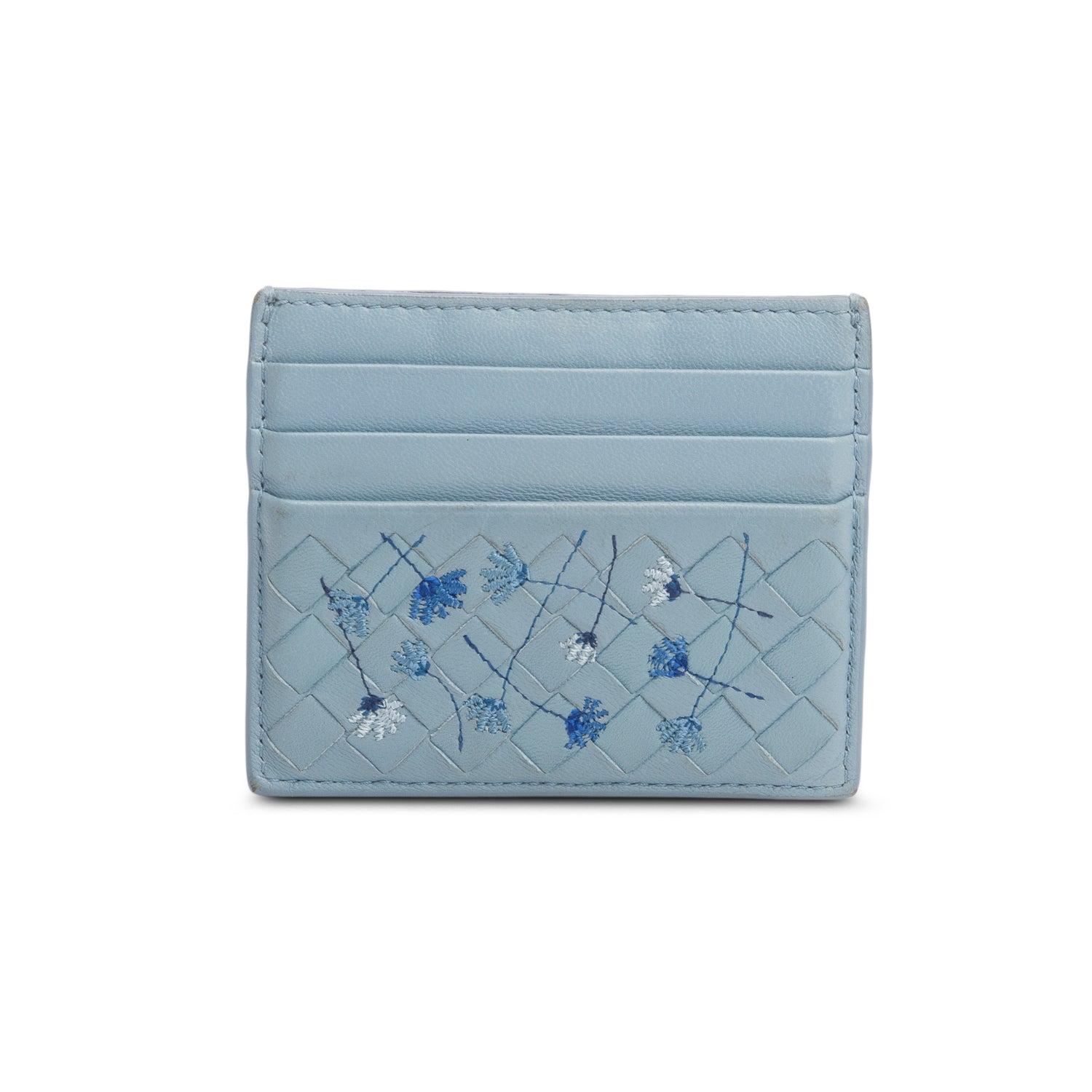 Bottega Venetta Blue Intreciatto Nappa Embroidered Card Holder