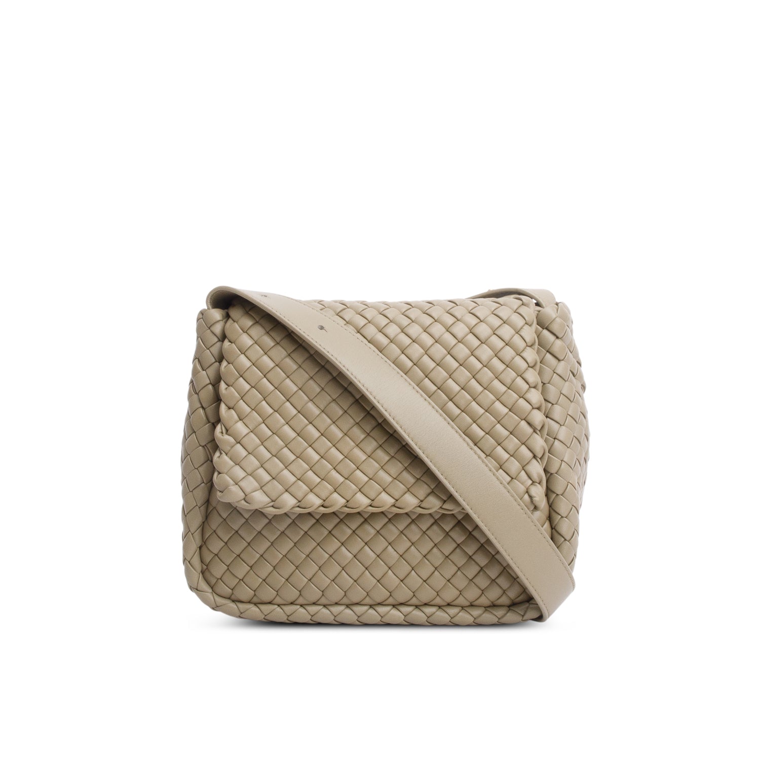 Grey Intrecciato Leather Medium Cobble Shoulder Bag