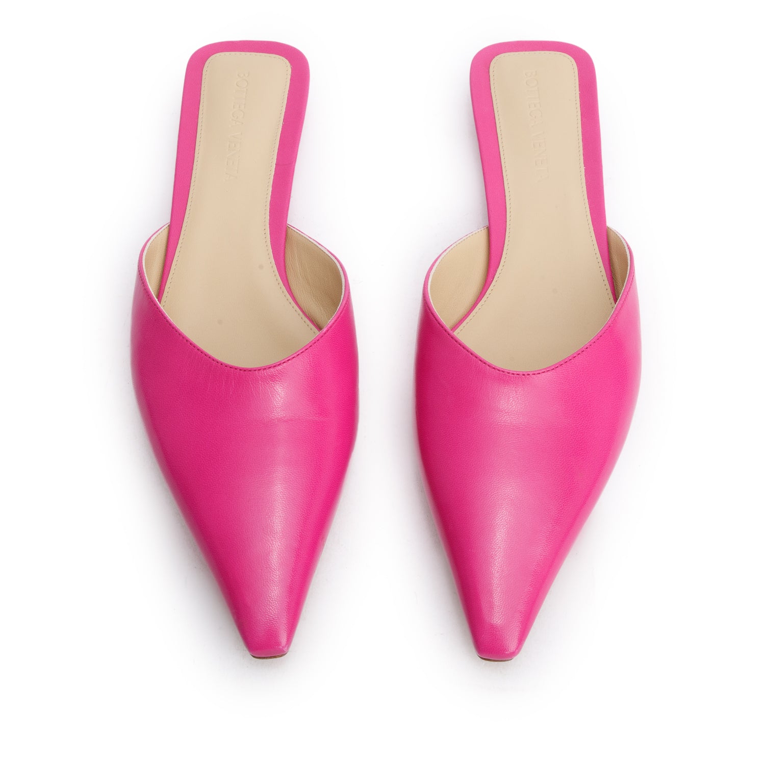 White Nappa Leather Padded Intreccio The Curve Mule Sandals, Size 38 w/ Box