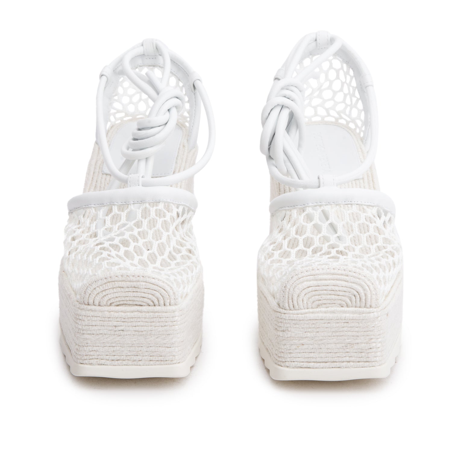 White Mesh Lambskin Sporty Web Stretch Ankle Tie Espadrilles, Size 36