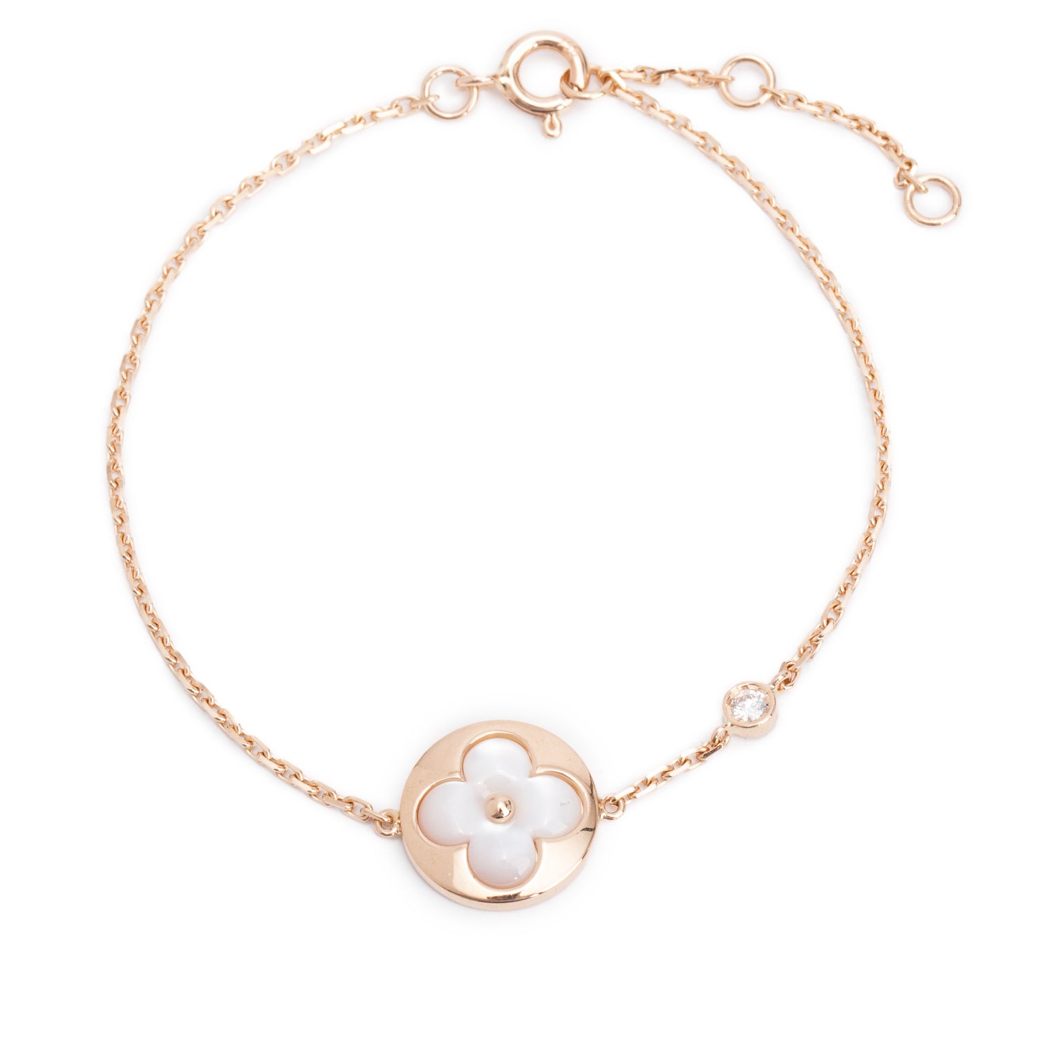 18k Rose Gold Pink Mother of Pearl & Diamond Color Blossom BB Sun Bracelet