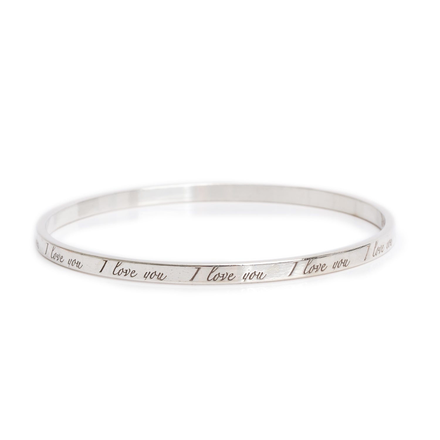 Sterling Silver Narrow 'I Love You' Notes Bangle Bracelet