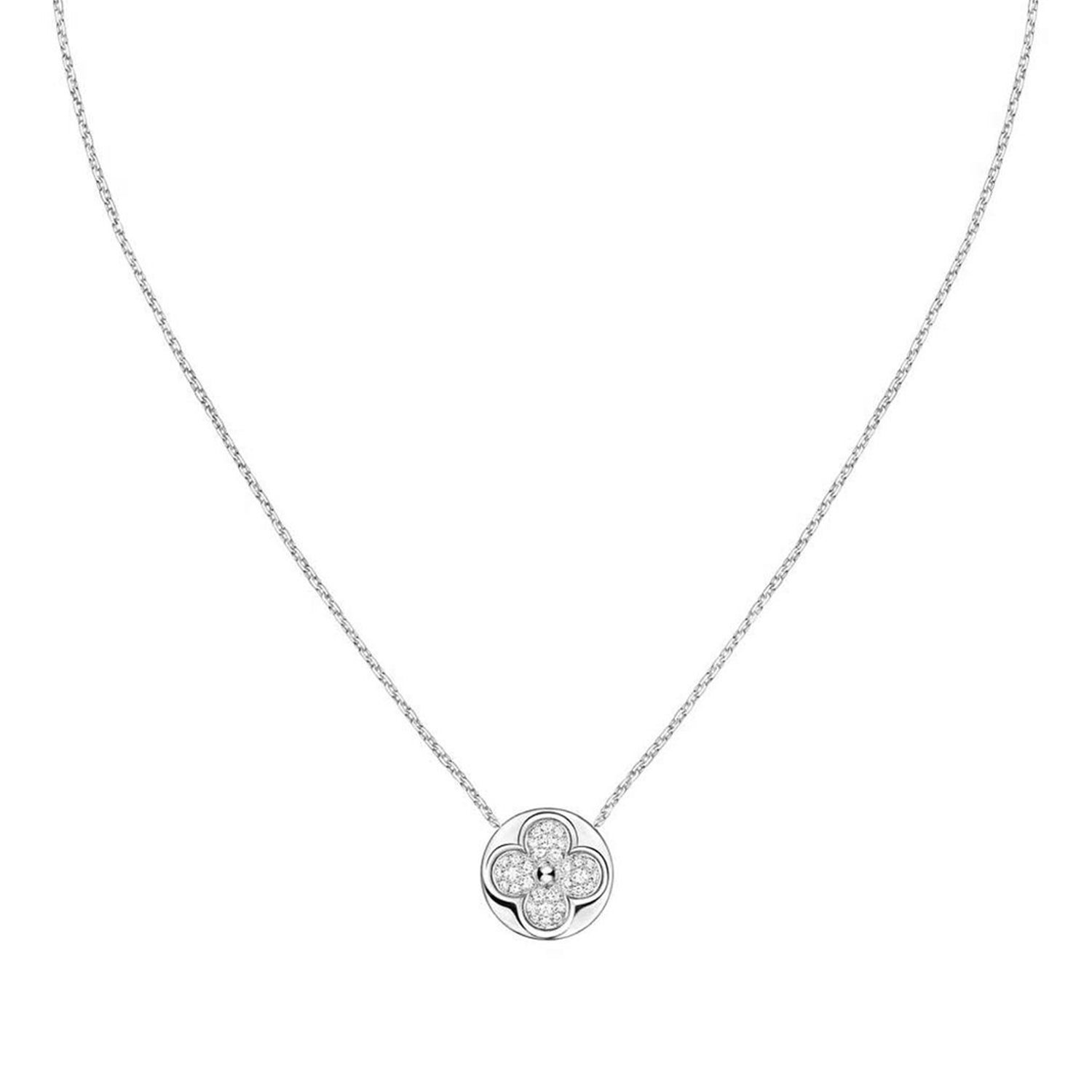 18k White Gold Pave Diamond Blossom Sun Pendant Necklace w/ Box