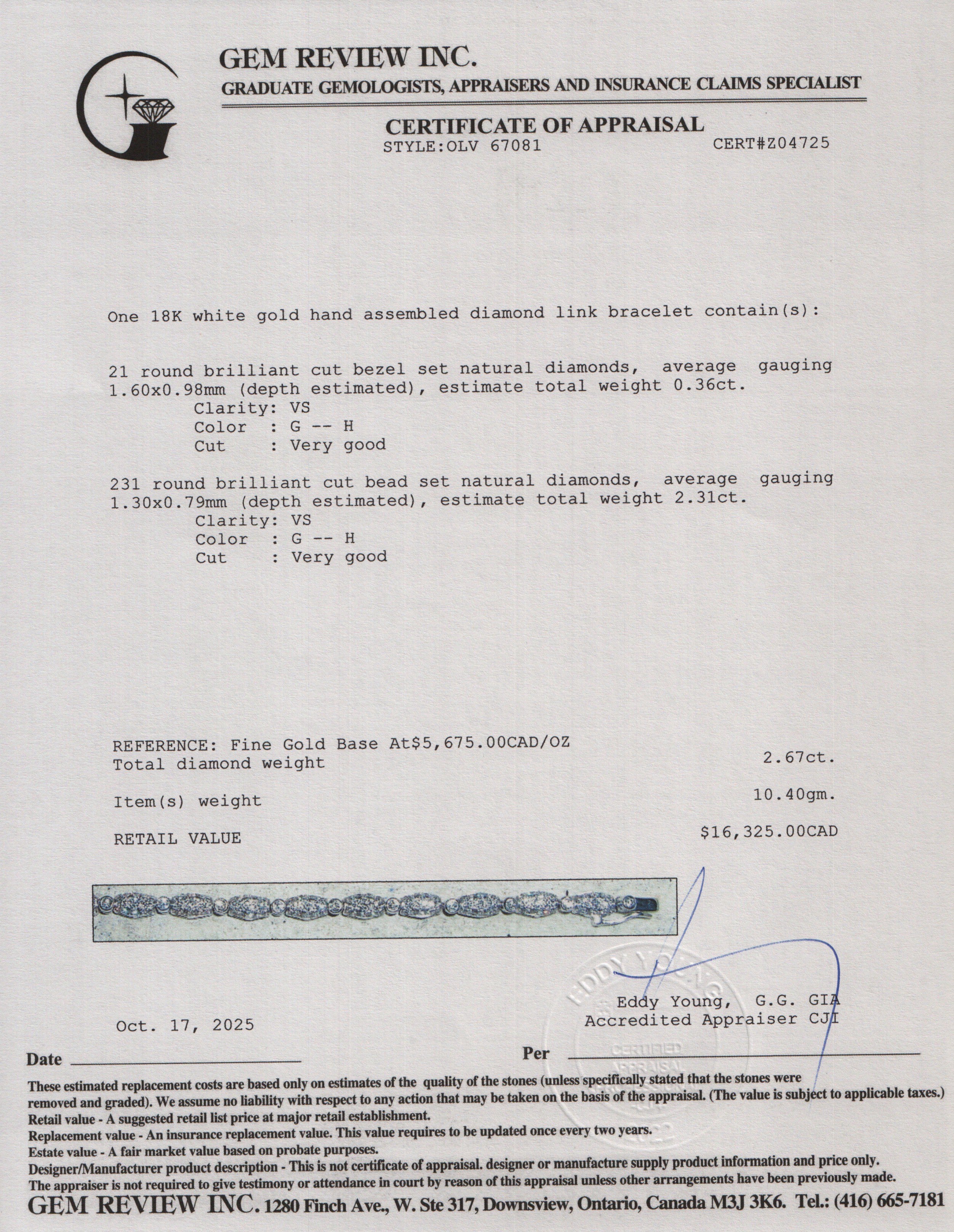 18k White Gold 2.67 tcw. Diamond Link Bracelet