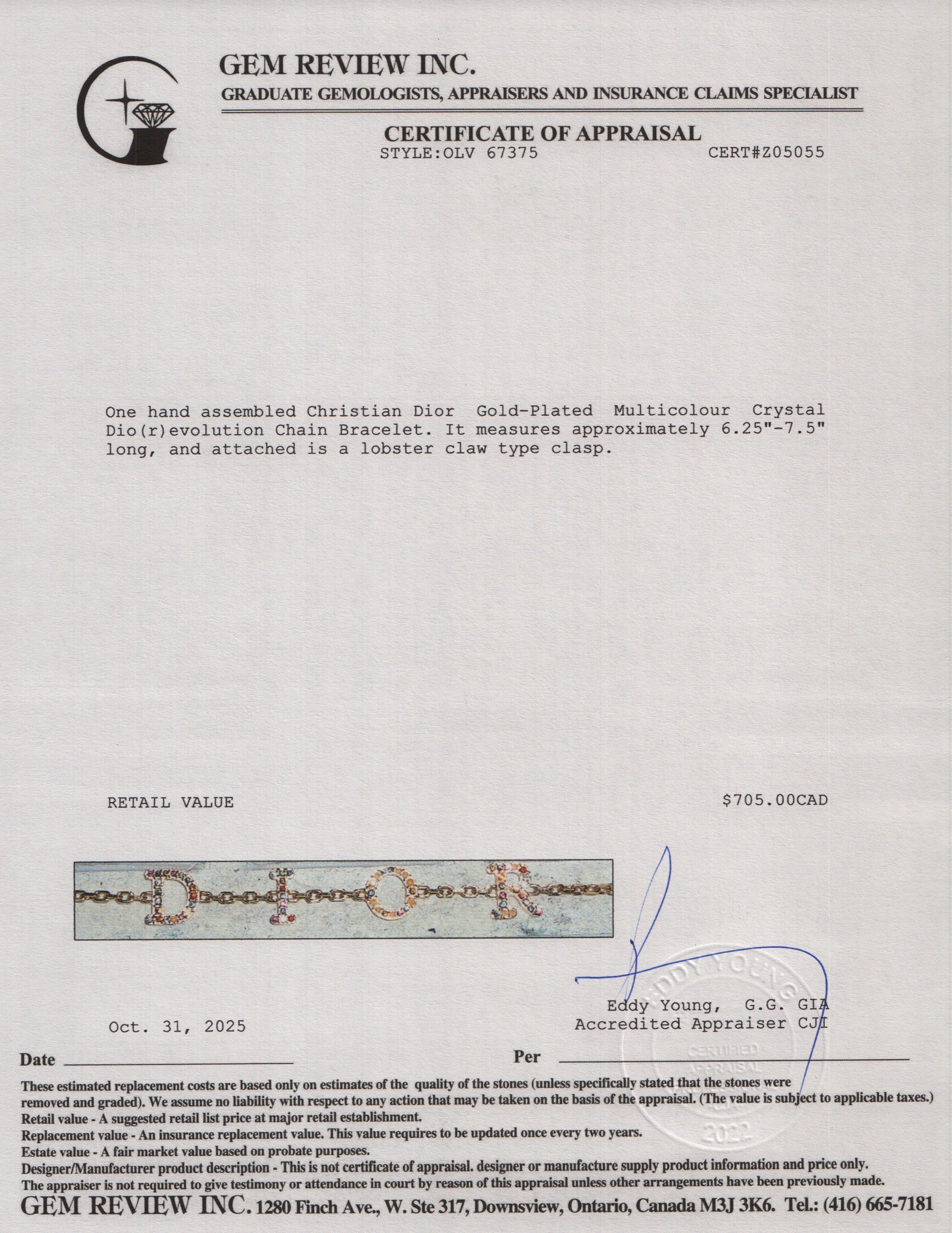 Gold-Plated Multicolour Crystal Dio(r)evolution Chain Bracelet w/ Box