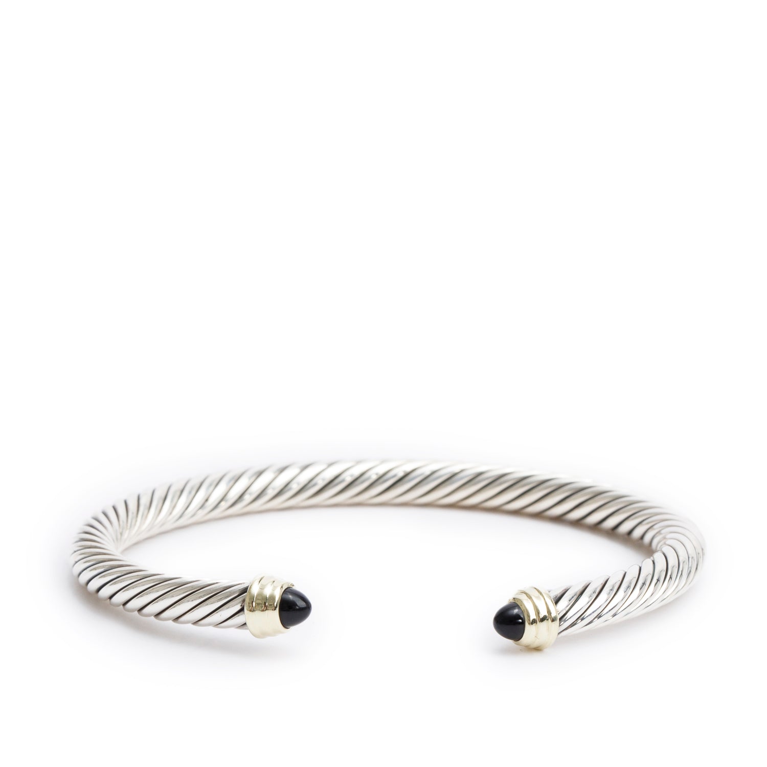 Sterling Silver & 14k Yellow Gold 5MM Cable Classics Bracelet with Black Onyx