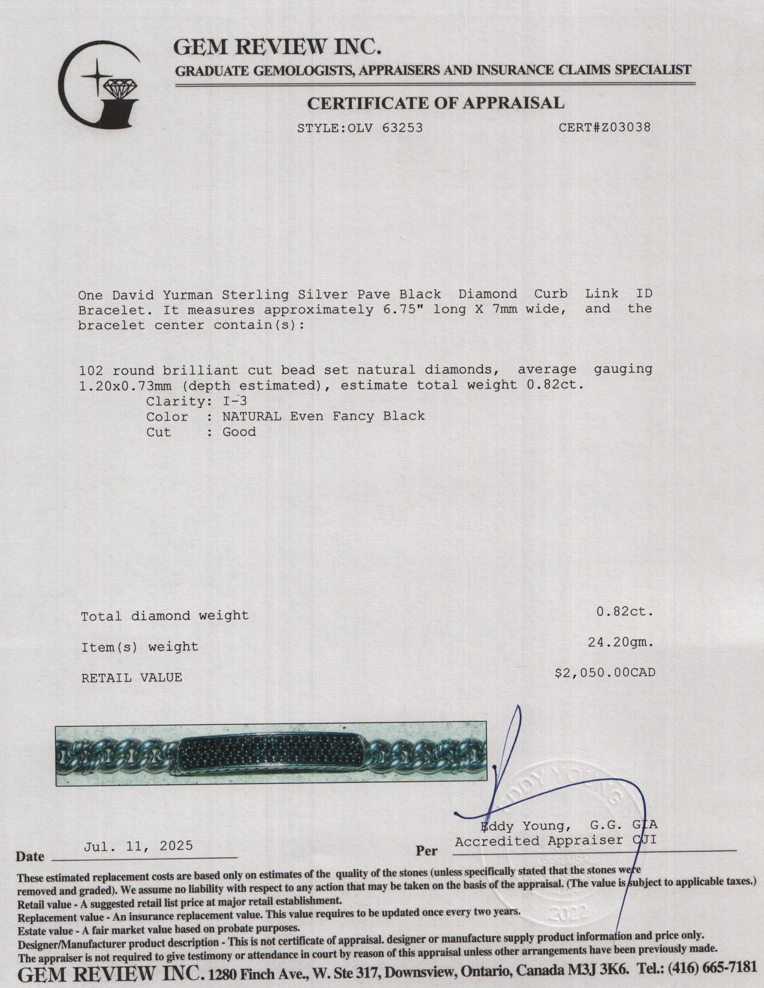 Sterling Silver Pave Black Diamond Curb Link ID Bracelet w/ Box