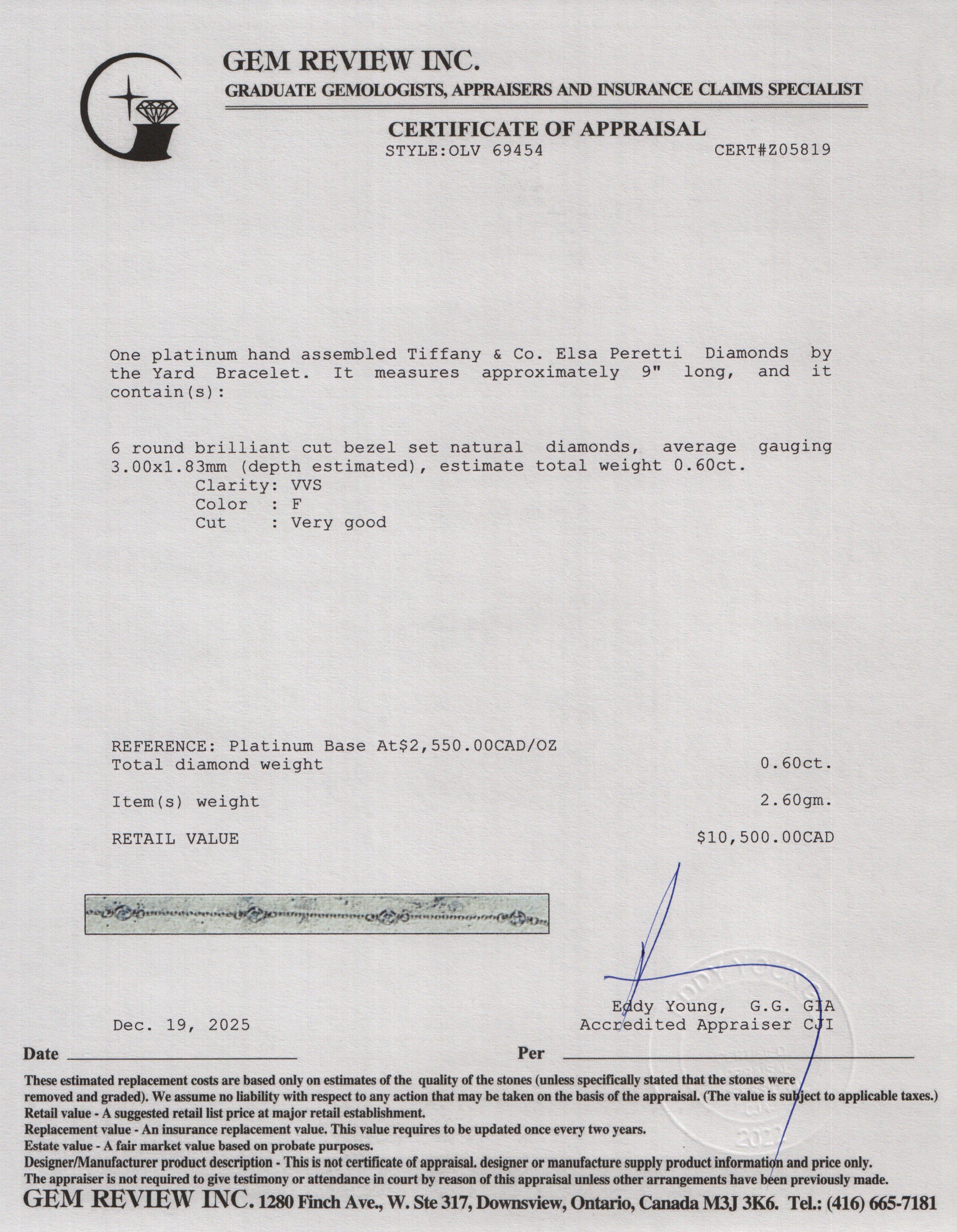 Elsa Peretti Platinum 0.60 tcw. Diamonds by the Yard Bracelet w/ Box