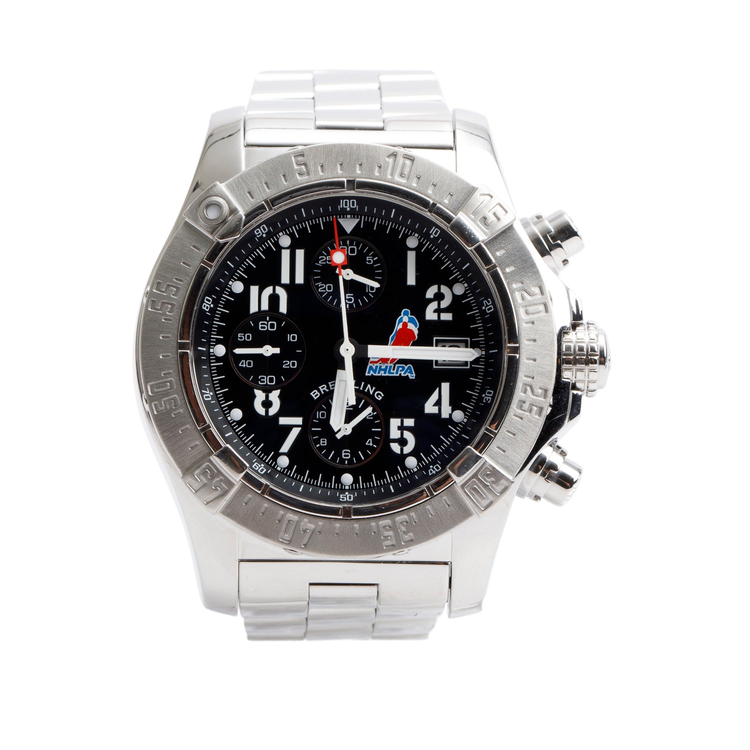 Stainless Steel Avenger Skyland NHLPA Edition 45 MM Automatic Chronograph Watch Black Dial A13380